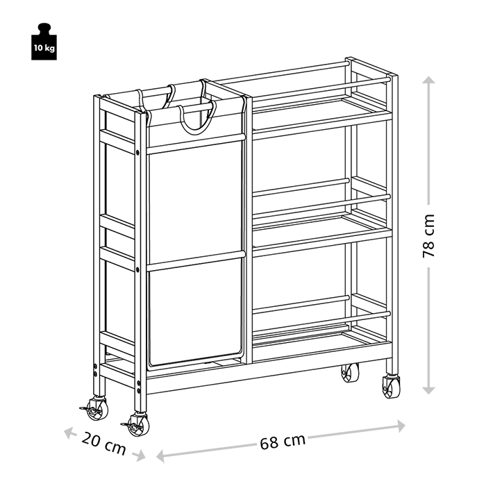 - Afmetingen: L 68 cm x B 20 cm x H 78 cm