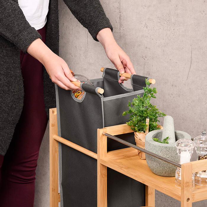 Ontdek de ideale combinatie van functionaliteit en stijl met deze compacte keukentrolley. Gemaakt van duurzaam FSC®-gecertificeerd bamboe, biedt de trolley een praktische oplossing voor het ruimtebesparend opbergen van keukengerei en andere spullen.