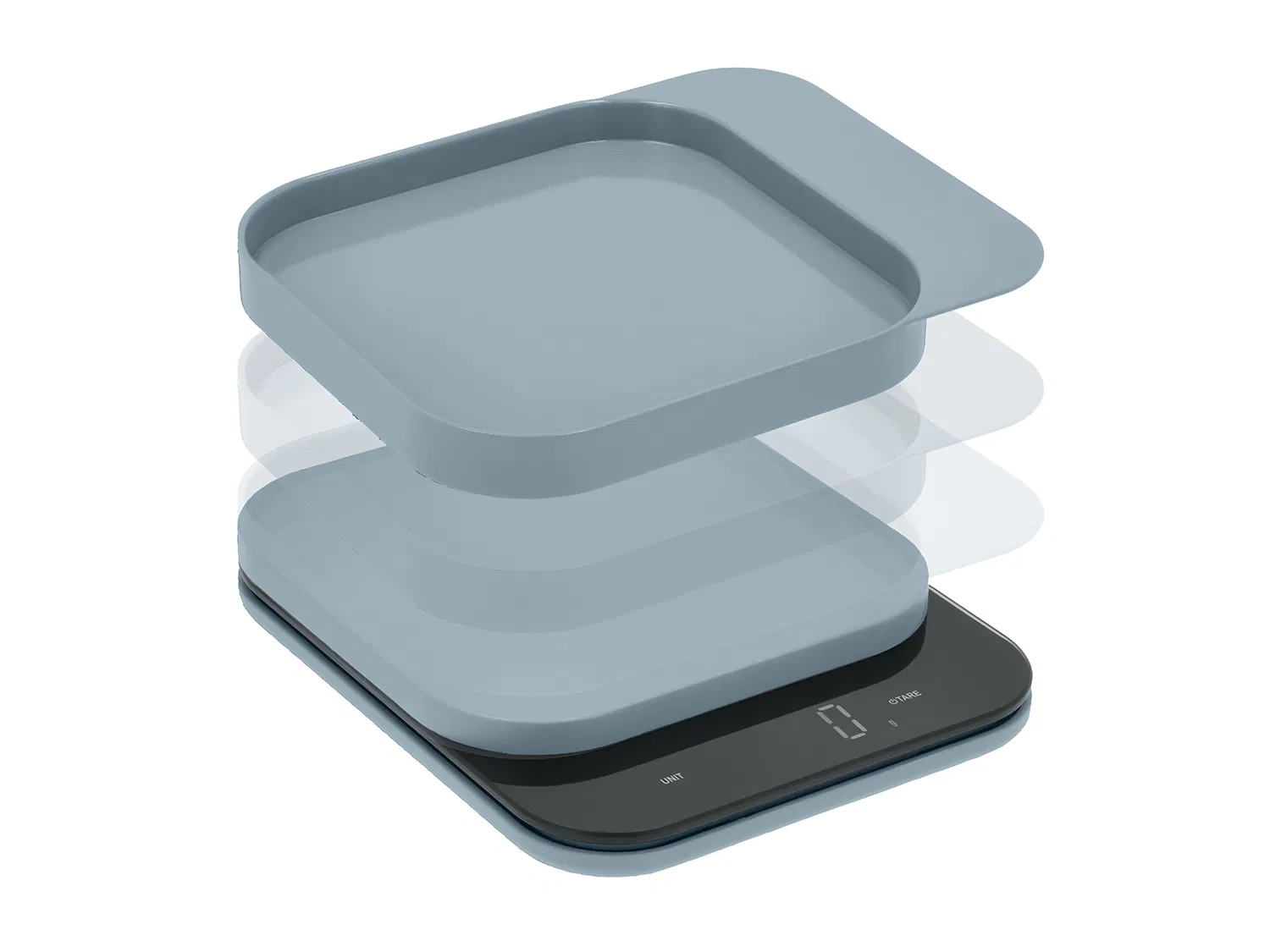 De Rosti Mensura keukenweegschaal in het Dusty Blue heeft een helder LED-display en biedt een maximale weegcapaciteit van 10 kg (22 lb), met een nauwkeurigheid van 1 gram (0,1 oz). De bijbehorende kom is gemaakt van ABS en heeft een inhoud van 300 ml. Wanneer de weegschaal niet in gebruik is, dient de kom als deksel om de weegschaal netjes op te bergen.