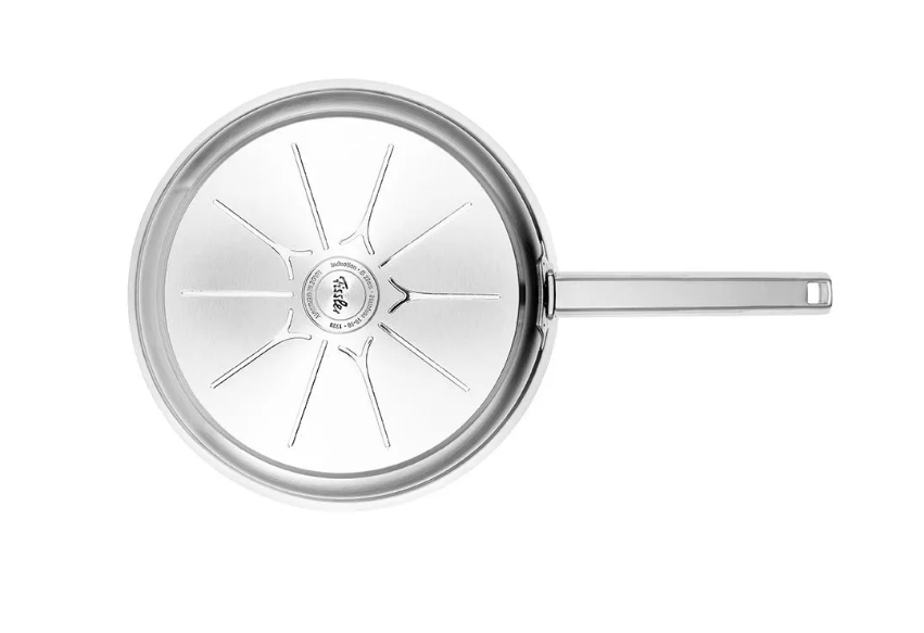 De hoogwaardige Fissler Cookstar® bodem zorgt voor een snelle en gelijkmatige warmteverdeling en is geschikt voor alle warmtebronnen, inclusief inductie en ovengebruik tot 230 °C. De brede schenkrand voorkomt morsen bij het afgieten van vloeistoffen. De koude metalen handgreep blijft langer koel en biedt een veilige, comfortabele grip.
