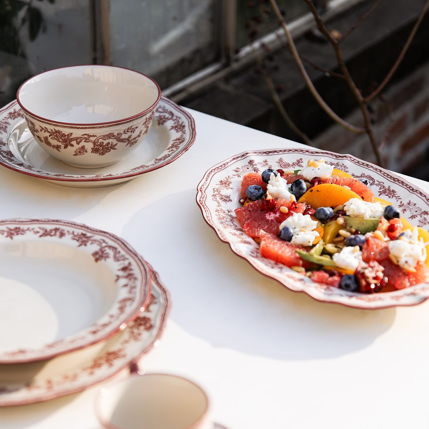 De Cyril collectie kenmerkt zich door bloemmotieven in modern groen en diep bordeaux, waarin een evenwicht wordt gevonden tussen een nostalgische uitstraling en een eigentijdse vormgeving. De verschillende items binnen de collectie, waaronder borden, kommen, mokken en diverse tafelaccessoires, zijn ontworpen om een sfeervolle en verzorgde tafelsetting te creëren.