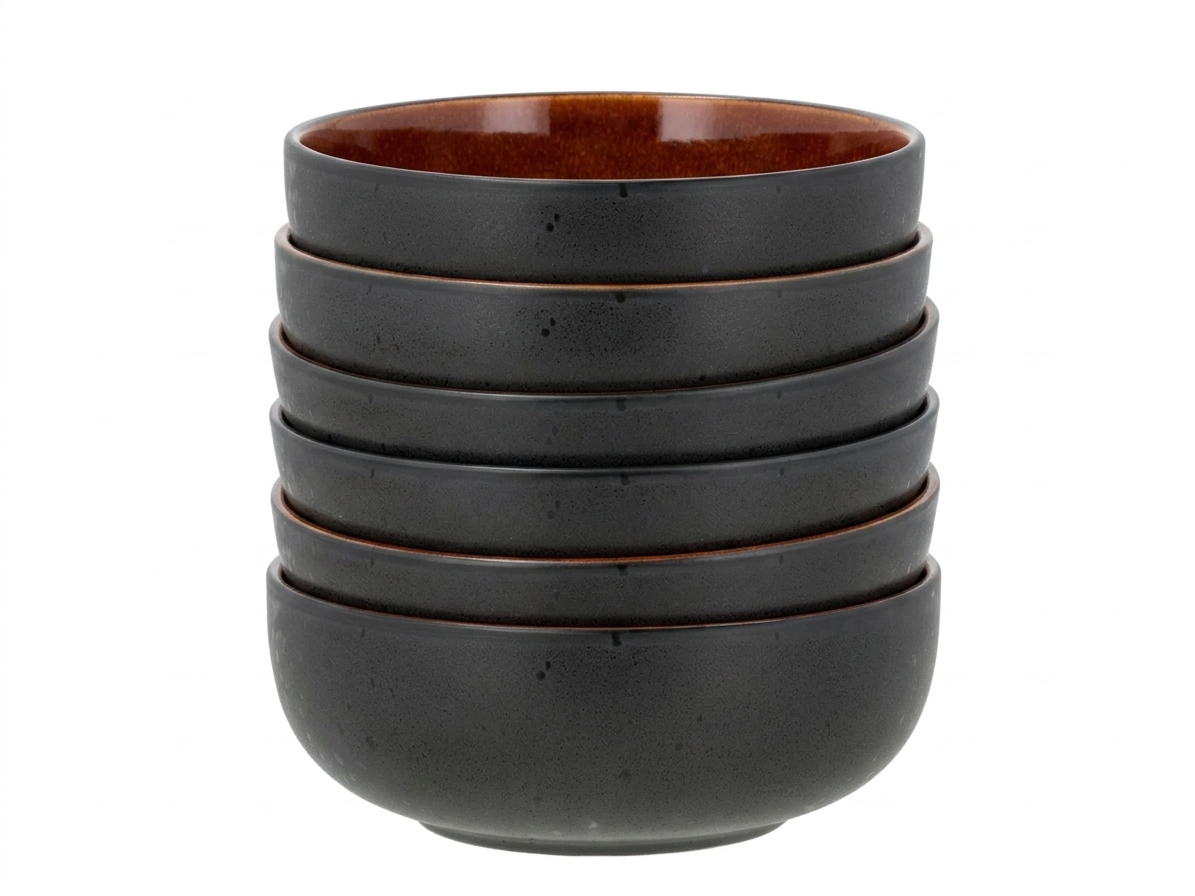 Deze set van 6 ruime kommen van Bitz combineert een krachtig design met veelzijdig gebruiksgemak. De kommen zijn vervaardigd uit duurzaam steengoed en hebben een stijlvolle uitstraling dankzij de matte zwarte buitenzijde en de glanzende amberkleurige binnenzijde. De reactieve glazuurafwerking zorgt ervoor dat elke kom uniek is en een eigen karakter heeft.