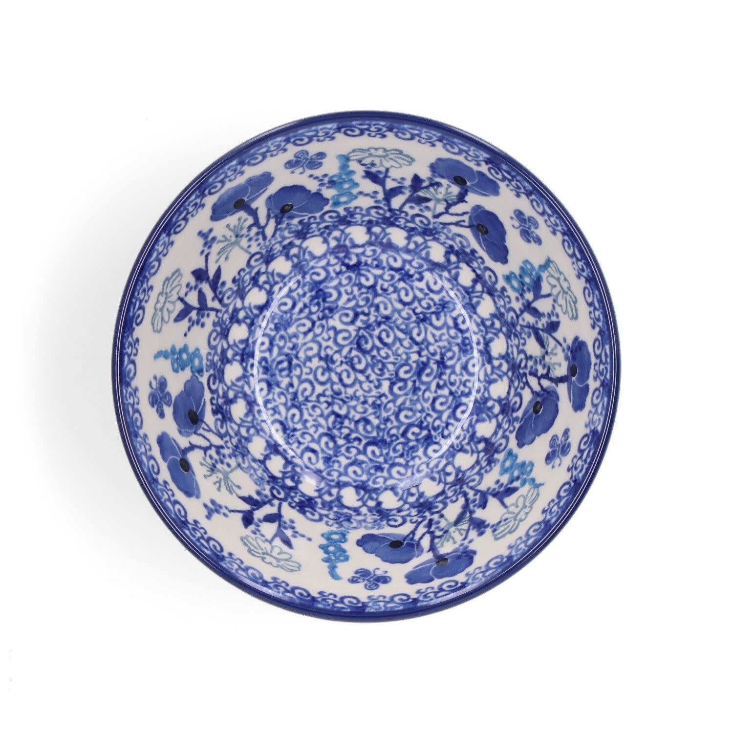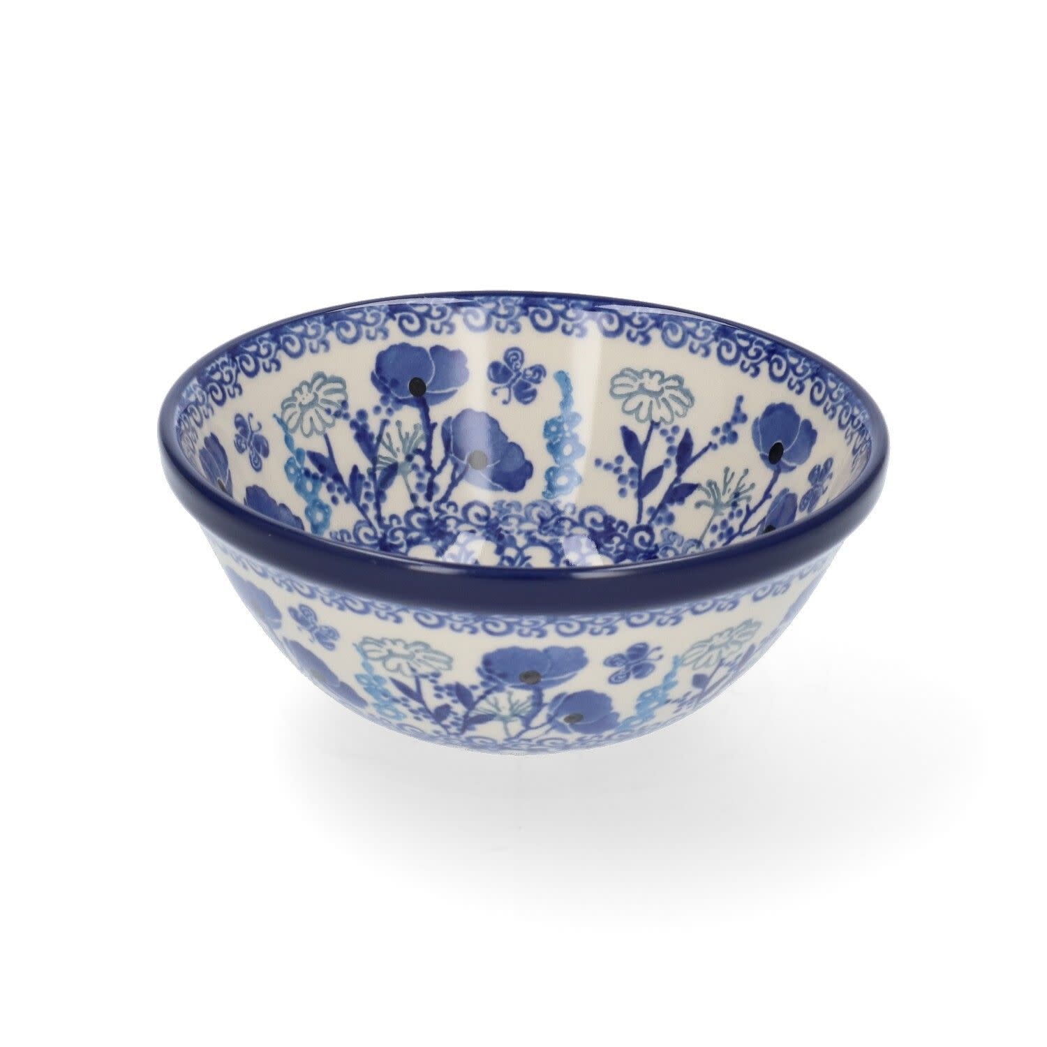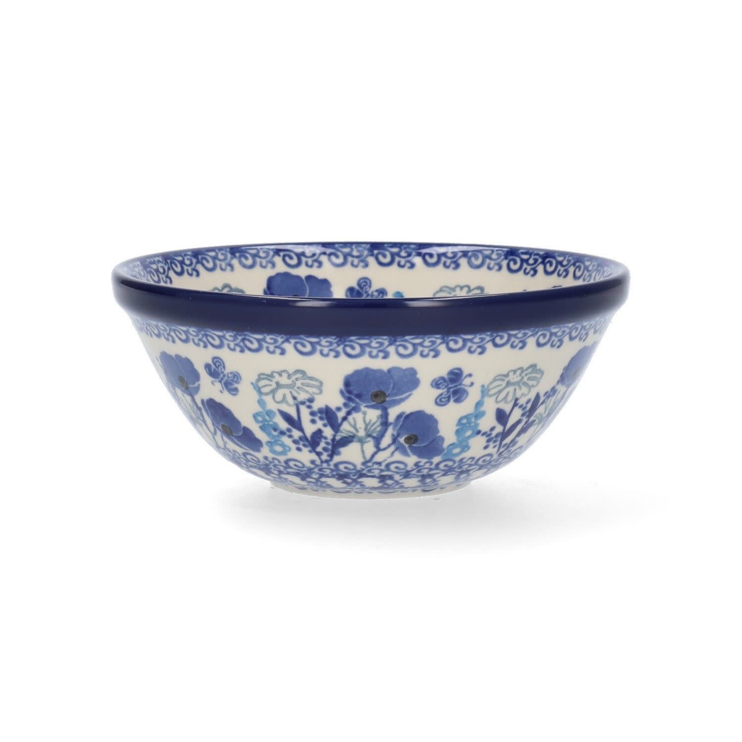 De kom Garden of Joy van Bunzlau Castle heeft een inhoud van 450 ml en is uitgevoerd in keramiek. Het decor toont een bloemrijk tafereel met vlinders tussen klaprozen en andere bloemen. De verschillende blauwtinten geven het geheel een gelaagde uitstraling.