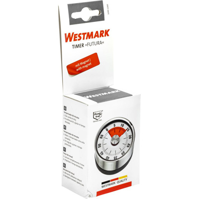 De Westmark timer “Futura” is een handige mechanische kookwekker waarmee u eenvoudig de kooktijd bewaakt, zonder batterijen. U draait de timer volledig op tot 60 minuten en stelt daarna de gewenste tijd in van 1 tot 60 minuten. Wanneer de tijd is verstreken, klinkt er een duidelijk alarmsignaal.