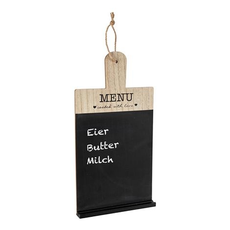 Het onderste gedeelte is een zwart krijtbord waarop je zelf teksten kunt schrijven, zoals een menu of boodschappenlijstje. Onderaan zit een klein plankje waar je het meegeleverde krijtje op kunt leggen.