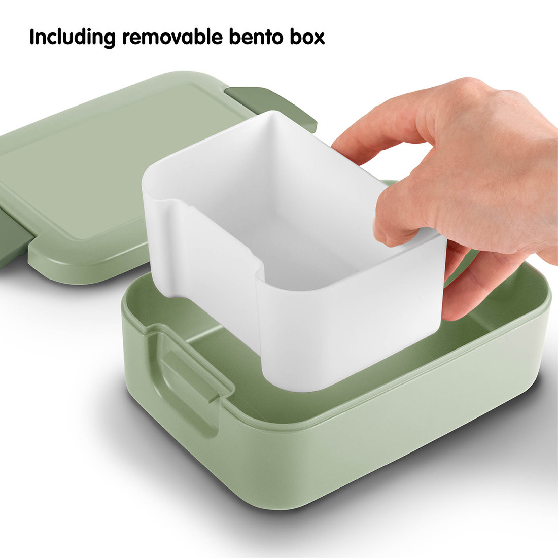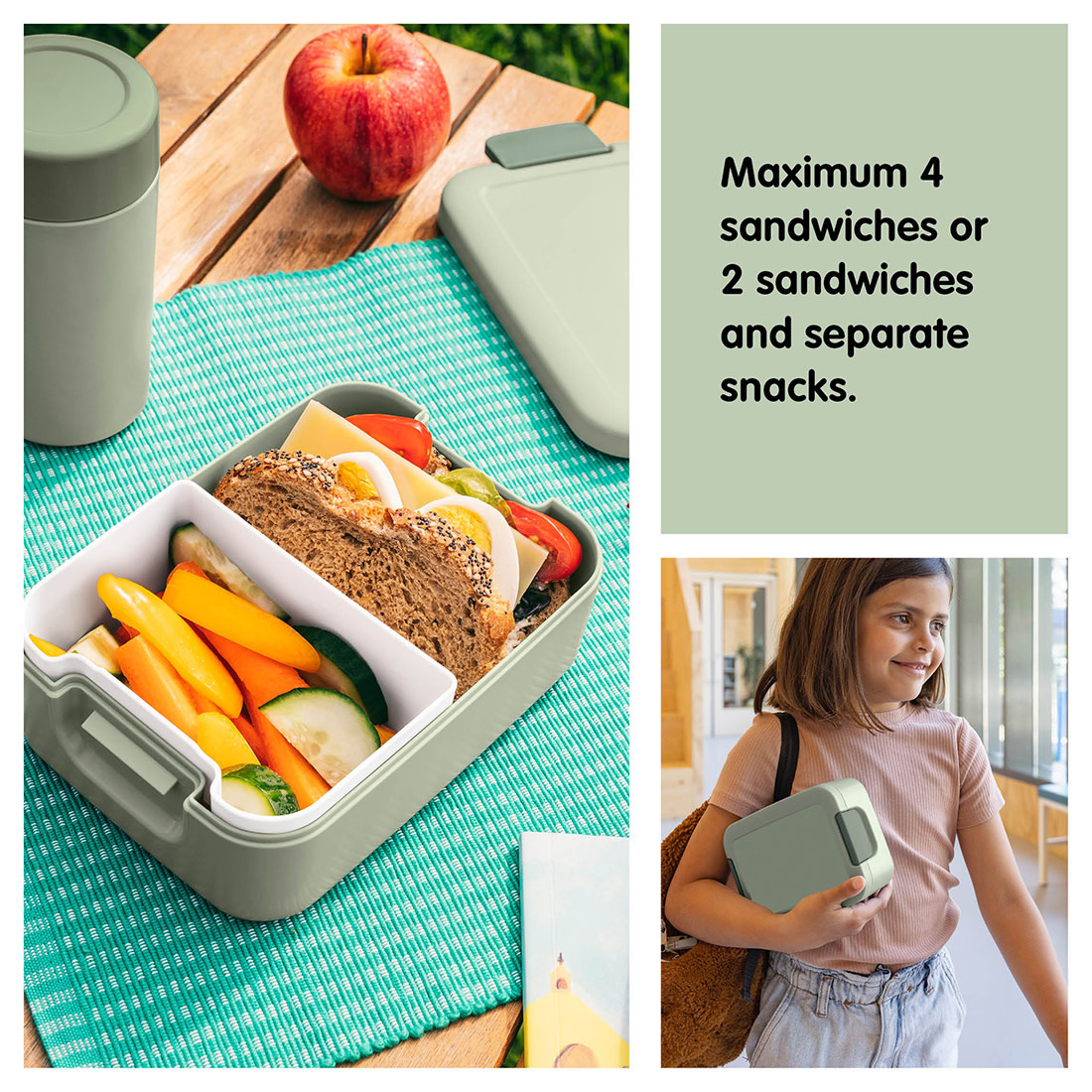 Wat deze lunchbox extra bijzonder maakt, is het los bijgeleverde bentobakje. Dit kleine bakje helpt je om losse ingrediënten of snacks gescheiden te houden, zodat alles vers blijft en je lunch netjes georganiseerd blijft. Zonder het bentobakje biedt de lunchbox voldoende ruimte voor vier boterhammen, wat hem perfect maakt voor een voedzame lunch.