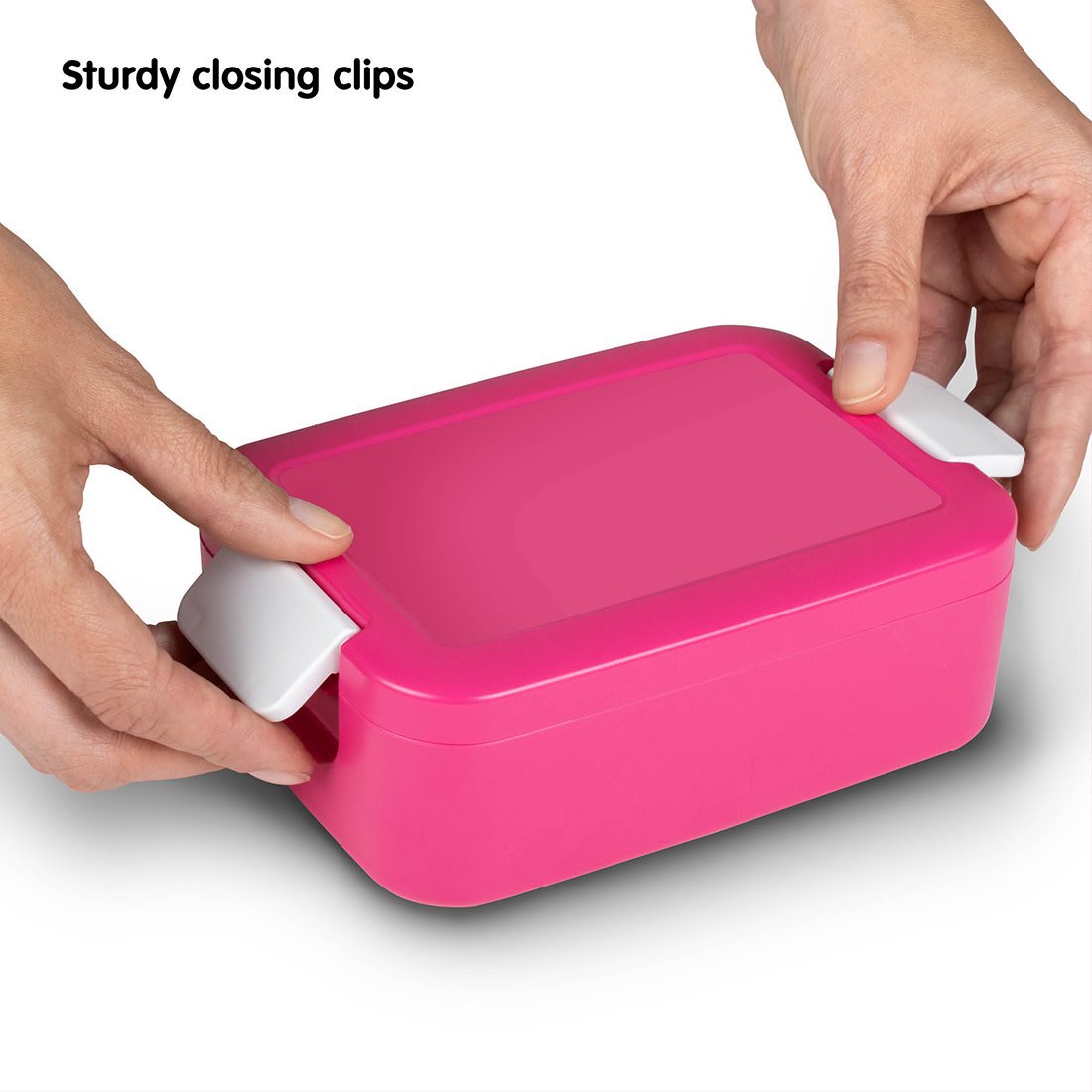 Met de Lunchbox fuchsia Sigma Home Food heb je altijd je lunch stijlvol en praktisch bij de hand. Deze kleurrijke broodtrommel biedt ruimte voor maximaal vier boterhammen en is perfect voor het meenemen van je dagelijkse lunch naar school, werk of onderweg. De handige sluitclips zorgen ervoor dat de lunchbox goed dicht blijft, zodat je je geen zorgen hoeft te maken over lekkende inhoud.