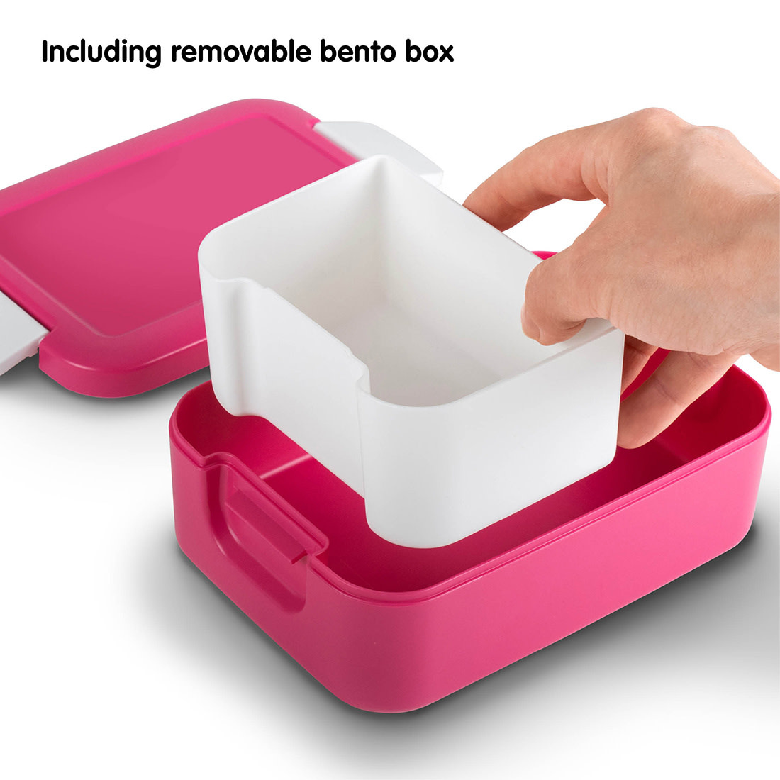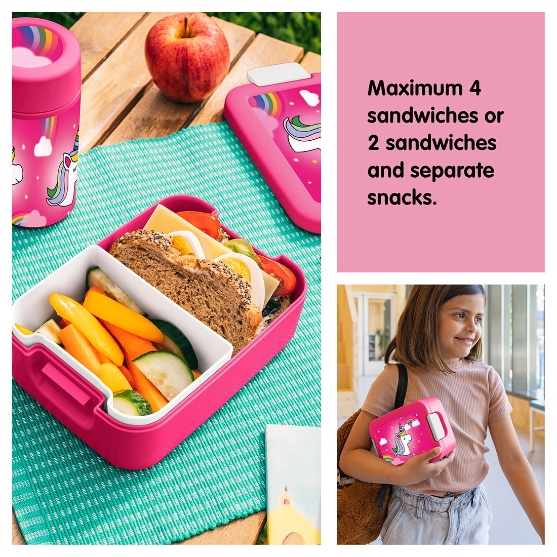 Wat deze lunchbox extra bijzonder maakt, is het los bijgeleverde bentobakje. Dit kleine bakje helpt je om losse ingrediënten of snacks gescheiden te houden, zodat alles vers blijft en je lunch netjes georganiseerd blijft. Zonder het bentobakje biedt de lunchbox voldoende ruimte voor vier boterhammen, wat hem perfect maakt voor een voedzame lunch.