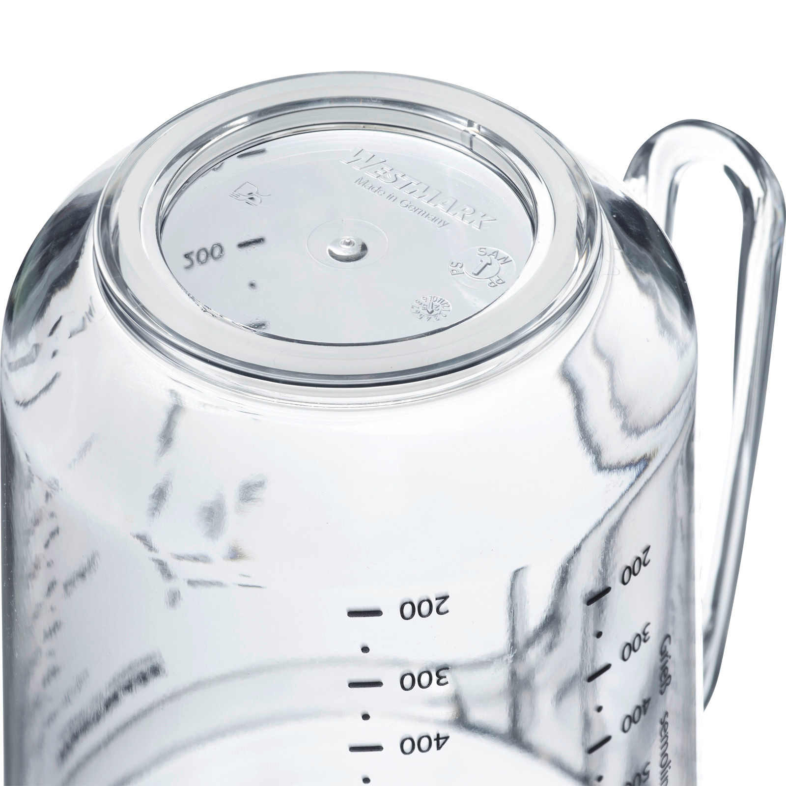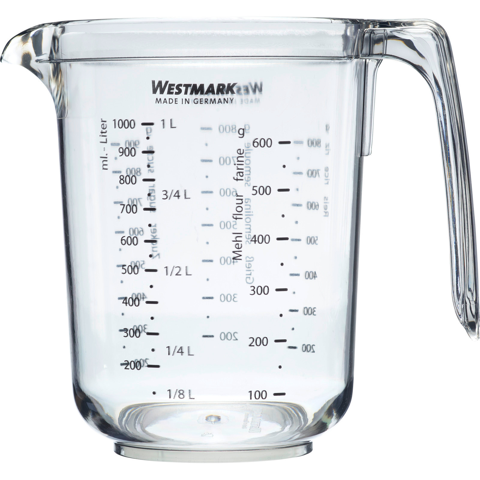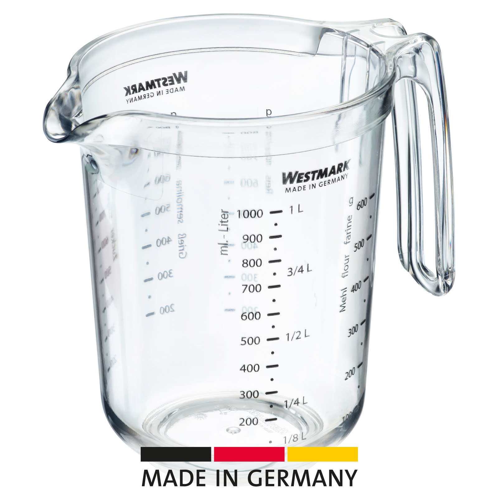 Deze robuuste maatbeker van Westmark biedt een gemakkelijke manier om ingrediënten snel en nauwkeurig af te meten. Met een inhoud van 1 liter en duidelijke schaalverdelingen in Duits, Engels en Frans, is de maatbeker geschikt voor het afmeten van zowel droge ingrediënten (zoals meel, suiker, griesmeel en rijst) als vloeistoffen in liter en milliliter.
