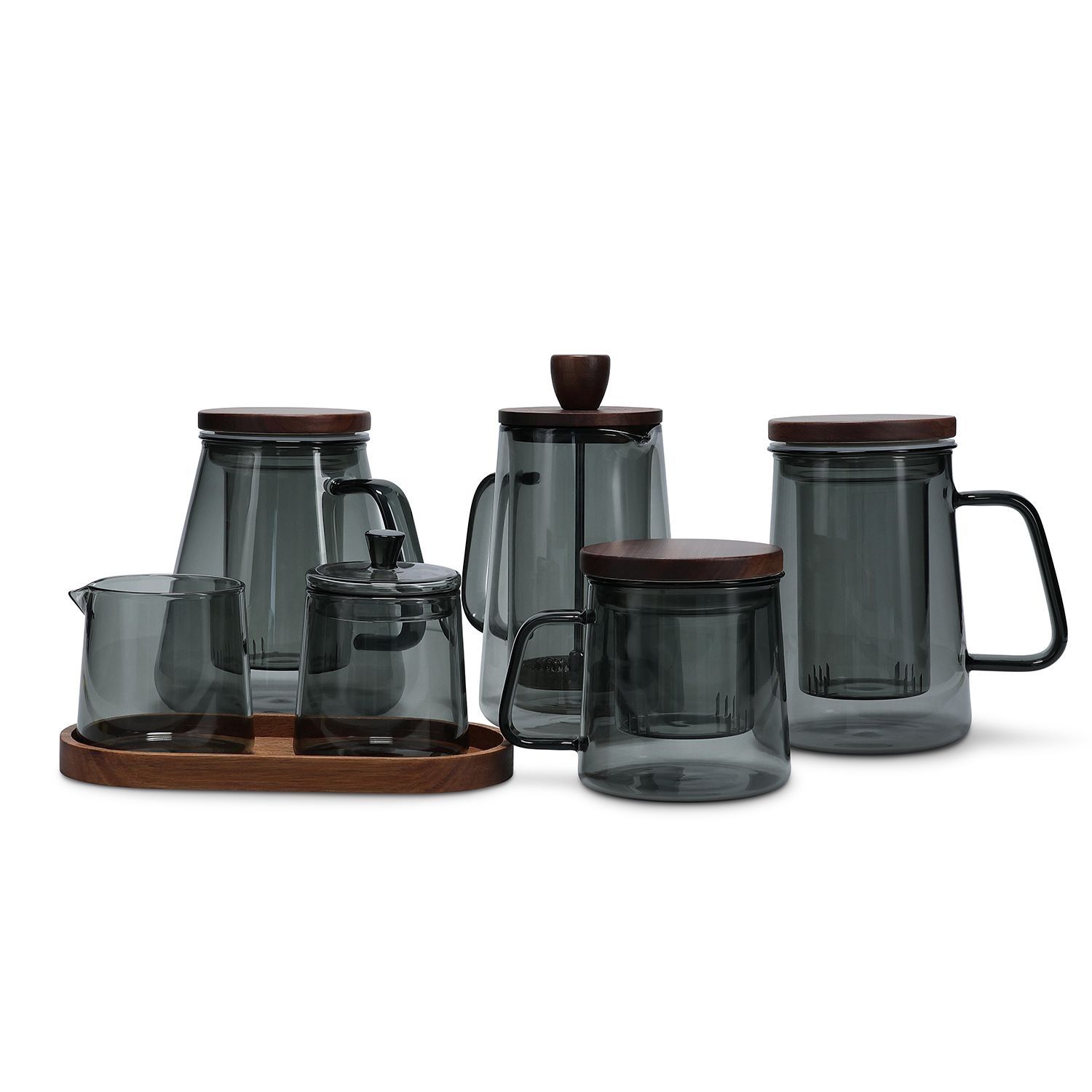 De zachte, grijze tint van het glas in combinatie met de natuurlijke houtkleur zorgt voor een tijdloze uitstraling die elke koffiepauze of theemoment naar een hoger niveau tilt. De 22 cl inhoud is ideaal voor dagelijkse rituelen en de set is volledig vaatwasserbestendig voor extra gemak.