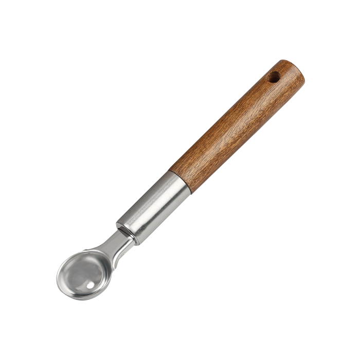 Schep moeiteloos meloen, fruit of andere zachte ingrediënten met deze meloenschep van roestvrij staal en FSC-gecertificeerd acaciahout. Het stevige RVS-blad zorgt voor precisie en duurzaamheid, terwijl het natuurlijke acacia handvat comfortabel in de hand ligt en een warme, stijlvolle uitstraling aan je keuken geeft.