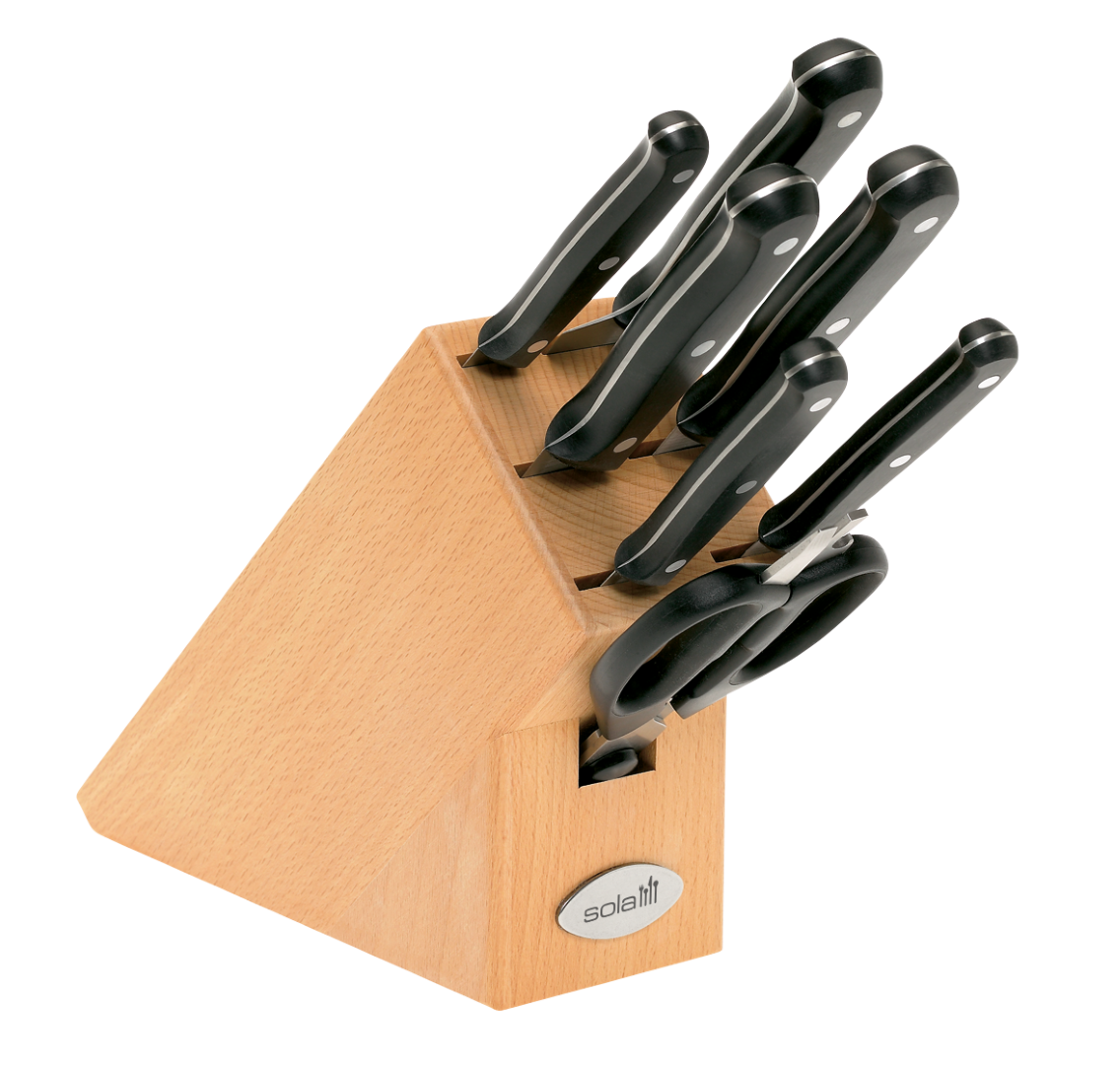 Met deze 8-delige messenset van Sola kun je direct aan de slag in de keuken. Een uitgebreide serie keukenmessen met een klassiek drie-klinknagel-design.