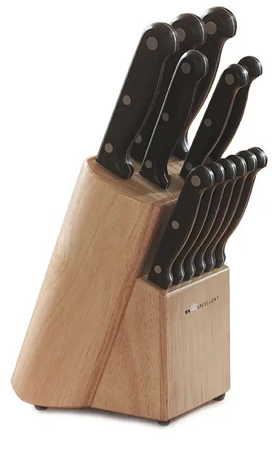 Met deze 13-delige messenset van BK heb je voor elke snijklus het juiste mes bij de hand. Een klassieker in de keuken. De geklonken kunststof handgrepen hebben een speciaal ontwikkelde vorm, waardoor het mes niet uit je hand glijdt. De overgang naar het lemmet zorgt voor extra bescherming van je handen. Het messenstaal is extra gehard en roestvast. De messen zijn lekker licht en liggen vast in de hand, waardoor je er makkelijk en lang mee kunt snijden. Na gebruik kun je de messen eenvoudig reinigen in lauwwarm water met een mild afwasmiddel. Je bergt ze veilig op in het bijgeleverde messenblok.