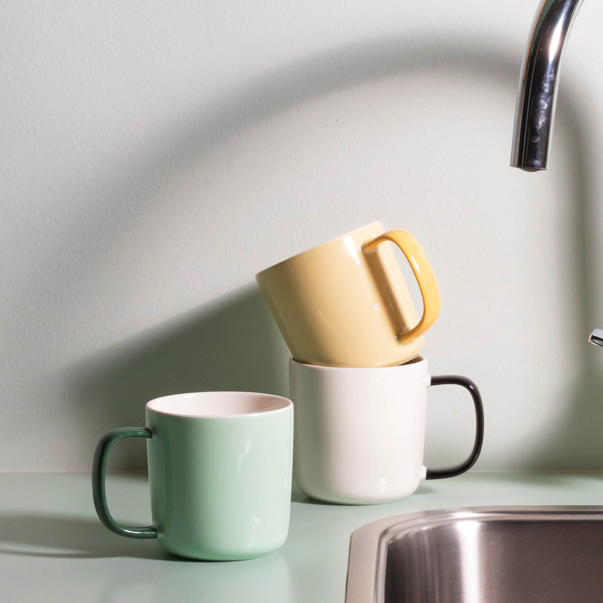 De Mae mok van 37 cl in geel is een frisse toevoeging aan je servies. De mok is uitgevoerd in een gele tint met donker gele accenten en heeft een ronde vorm. Gemaakt van new bone china porselein en afgewerkt met een niet reactieve glazuurlaag, waardoor hij geschikt is voor dagelijks gebruik.
