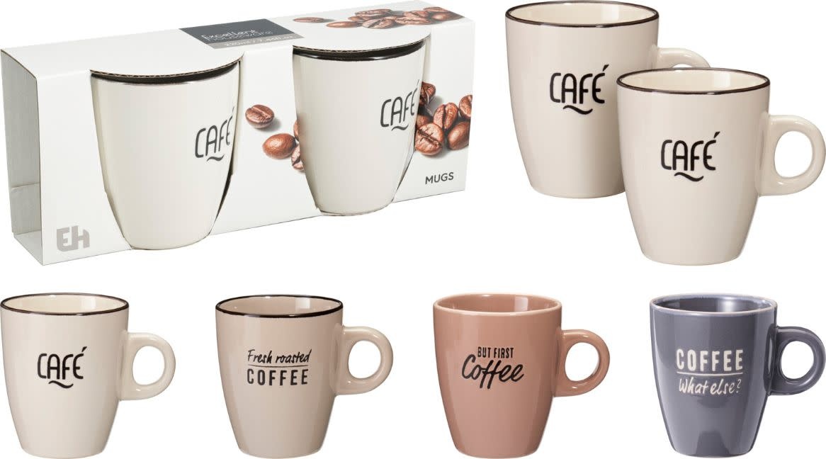 Set van 2 mokken aardewerk 220ml gres 4 ass