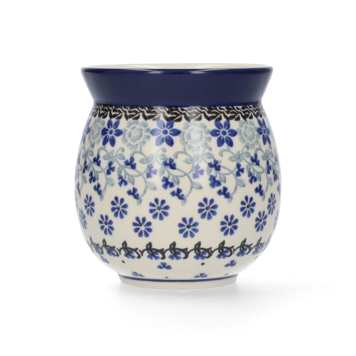 Deze ruime mok van 500 ml uit de Belle Fleur collectie valt op door het rijke bloemendecor. Verschillende bloemen in diverse tinten blauw worden gecombineerd met blauwgrijze accenten en zwarte, sierlijke bladeren en details. Dit geeft de mok een stijlvolle uitstraling met een stoer randje.