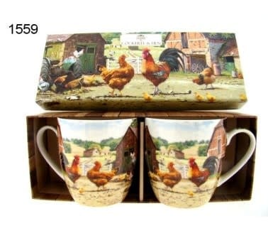 Deze mokkenset heeft een diameter van 8,4 centimeter en een hoogte van 9 centimeter, perfect voor dierenliefhebbers. De set bevat twee mokken, versierd met een haan en een hen, ideaal voor een gezellig kopje koffie of thee. Het perfecte cadeau voor dierenvrienden!
