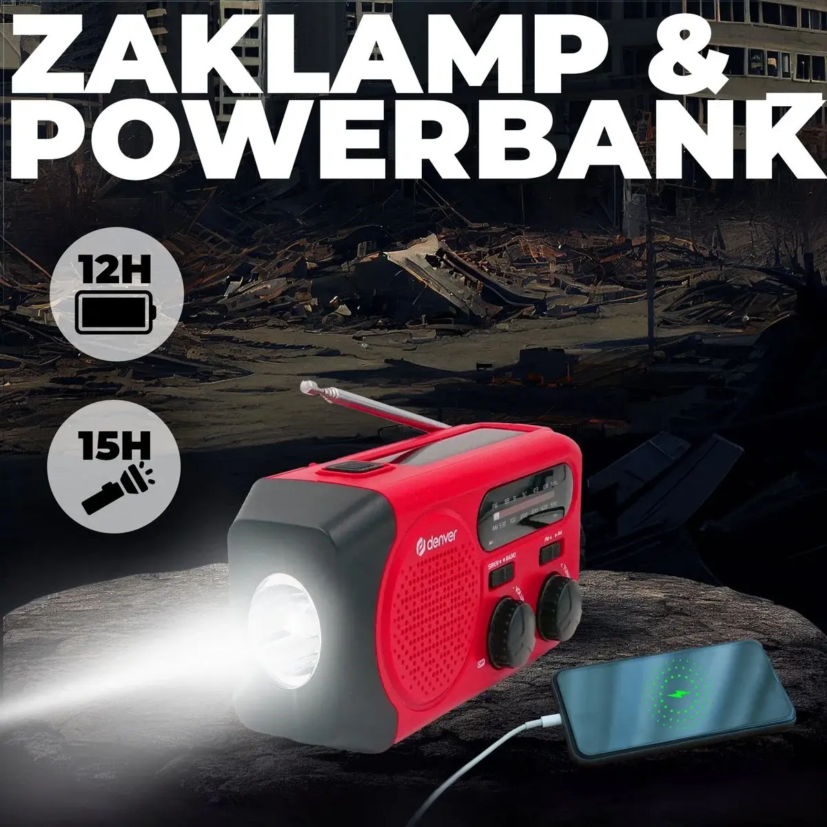 Noodradio - Powerbank - Zaklamp - AM/FM Radio Denver SCR-2010