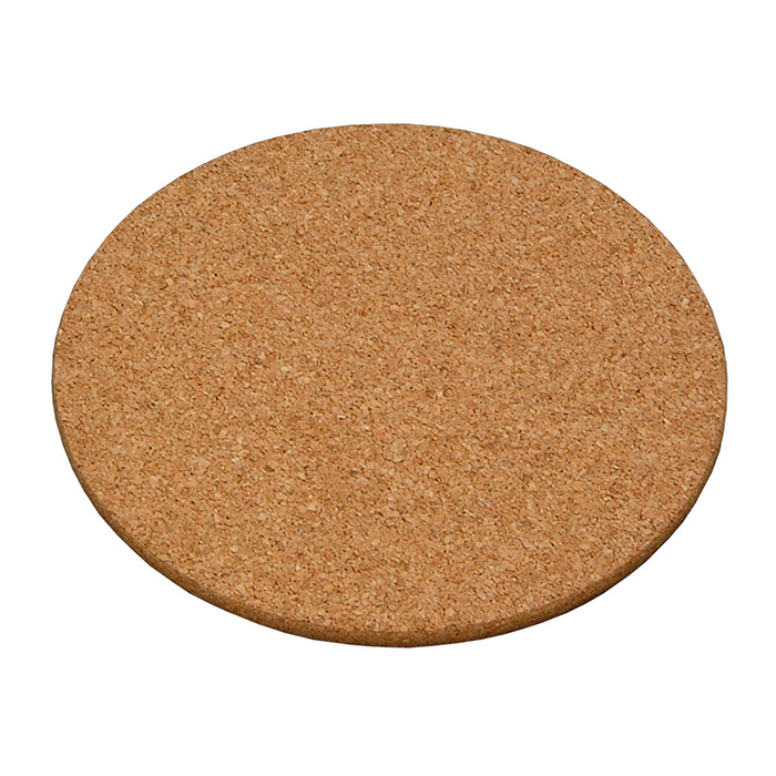 Pannenonderzetter met een diameter van 20 cm en een hoogte van 1 cm, gemaakt van kurk. Zorgt ervoor dat hete potten, pannen en ovenschalen veilig op tafel of aanrecht kunnen worden geplaatst zonder het oppervlak te beschadigen.