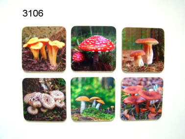 Deze set van 6 vierkanten onderzetters van kurk is versierd met sfeervolle afbeeldingen van verschillende paddenstoelen. Ze beschermen je tafel tegen hitte en vocht, terwijl ze tegelijkertijd een natuurlijke en decoratieve uitstraling geven aan je interieur.
