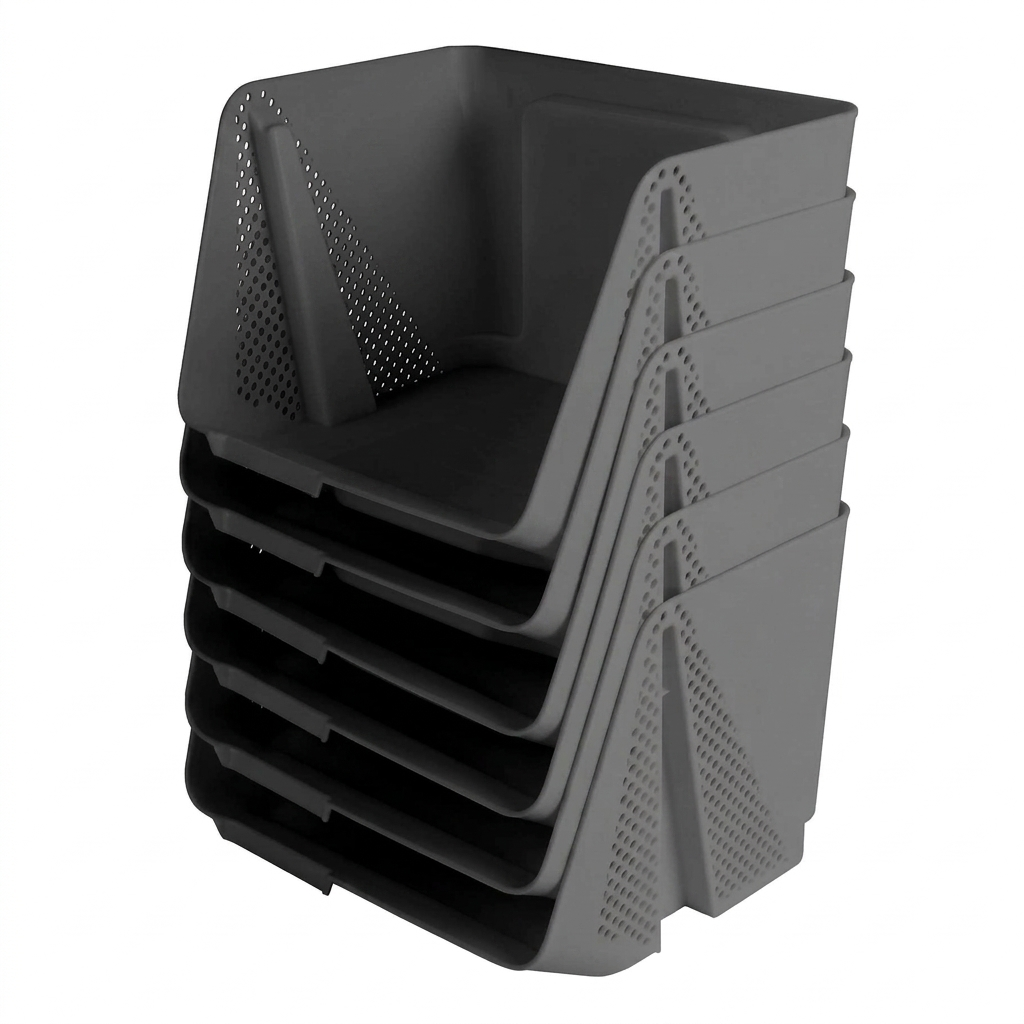 - 6x Opbergbak maat M Stackable Sigma Home antraciet
