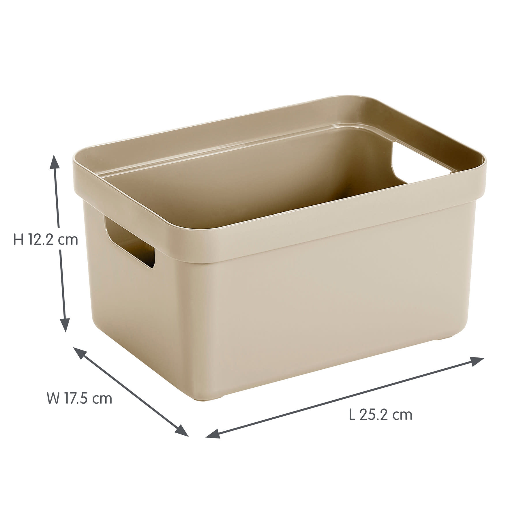 Deze 5 liter opbergbox uit de Sigma Home serie van Sunware biedt een stijlvolle oplossing voor het organiseren van je spullen. Gemaakt van gerecycled plastic, is de box zowel duurzaam als milieuvriendelijk. De box is stapelbaar, wat zorgt voor efficiënt gebruik van de ruimte. Dankzij de geïntegreerde handgrepen is de box gemakkelijk te verplaatsen. Het compacte formaat maakt de box geschikt voor het opbergen van kleinere items zoals speelgoed, (telefoon)laders of boekjes.