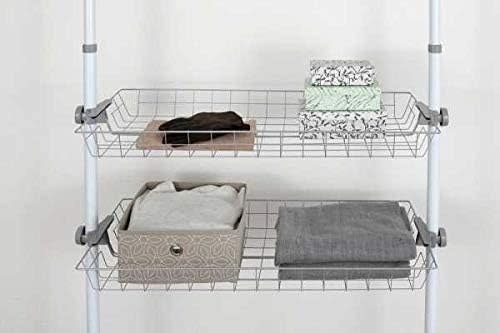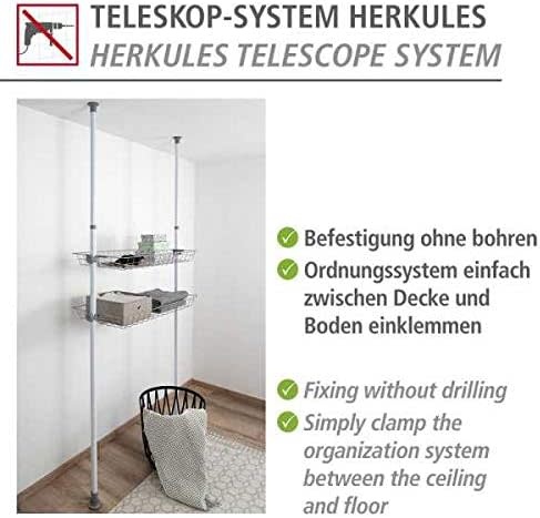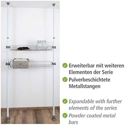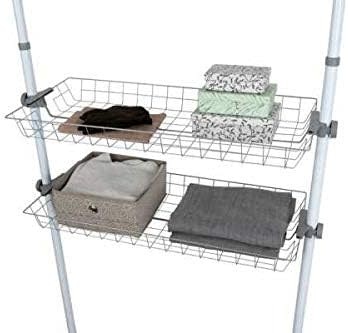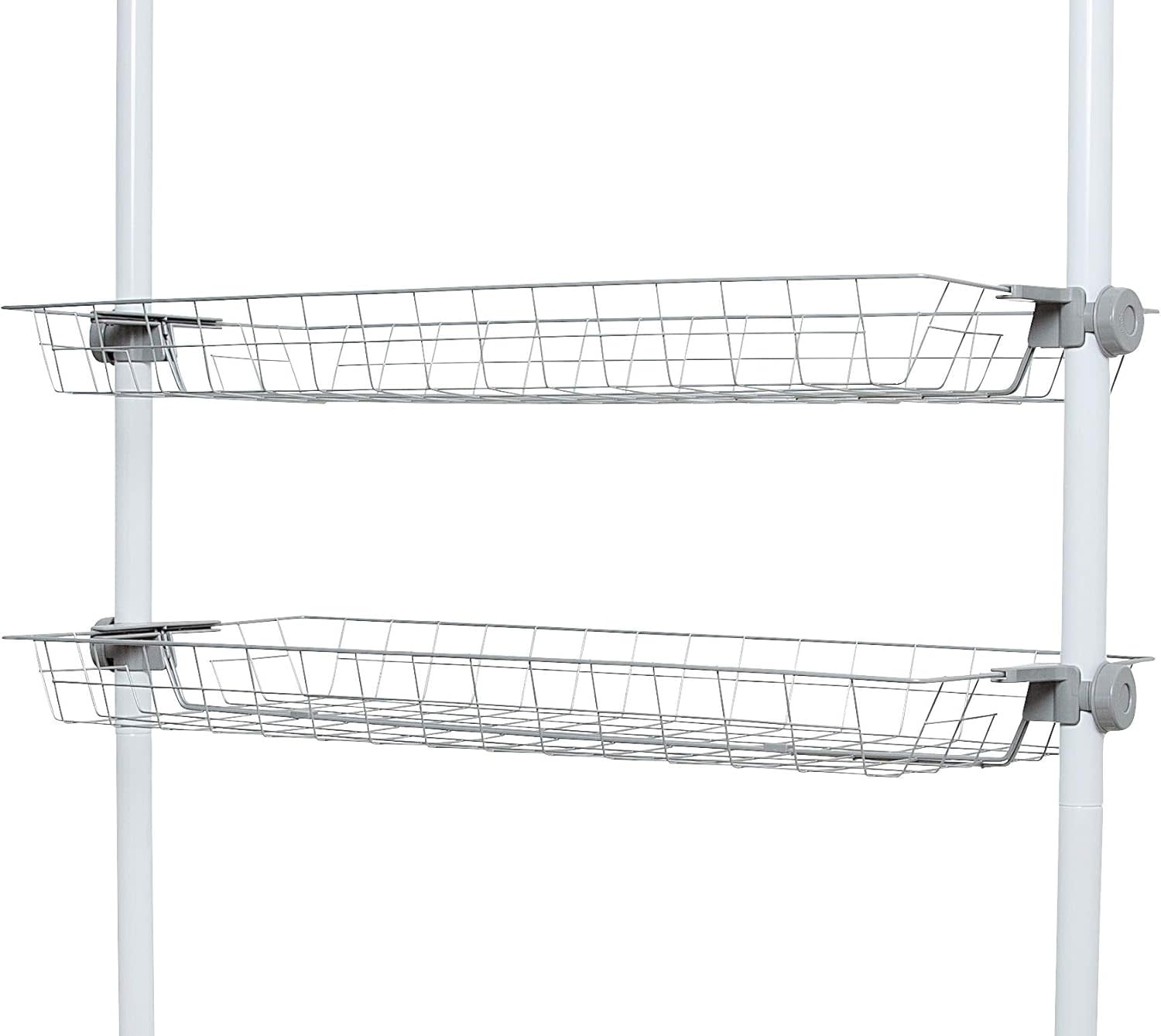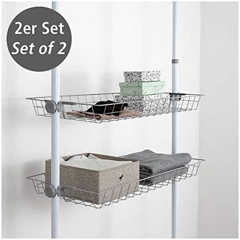 Voeg extra opbergruimte toe aan je telescoopsysteem Hercules van WENKO met deze handige set van twee draadmanden. Perfect voor het netjes opbergen van kleding, accessoires, sokken of riemen, zodat je walk-in closet of garderobe overzichtelijk blijft. De manden zijn eenvoudig te monteren tussen de verticale hoofdstangen van het Hercules-systeem en passen naadloos bij de overige accessoires.