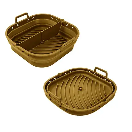 Deze opvouwbare airfryer bakvorm van platinum silicone in de kleur komijn is een echte multitasker in de keuken. Met een afmeting van 20 x 20 x 9 cm past hij perfect in de meeste airfryers en is hij ideaal voor het bereiden van allerlei gerechten – van ovenschotels en baksels tot gegrilde groenten. Dankzij het flexibele, duurzame silicone kun je hem eenvoudig opvouwen en compact opbergen.