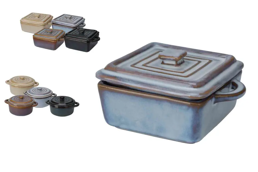 Het mini pannetje is verkrijgbaar in vier kleuren: crème, oranje/blauw, blauw en zwart. En is beschikbaar in twee vormen: vierkant en rond. Dit maakt het makkelijk om een pannetje te kiezen dat past bij uw stijl en voorkeuren.