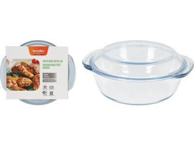 De schaal is gemaakt van transparant borosilicaatglas. Dit sterke glas kan goed tegen hoge temperaturen en laat je het gerecht goed zien tijdens het koken. Dankzij de bijpassende deksel kun je gerechten ook makkelijk afdekken en bewaren.