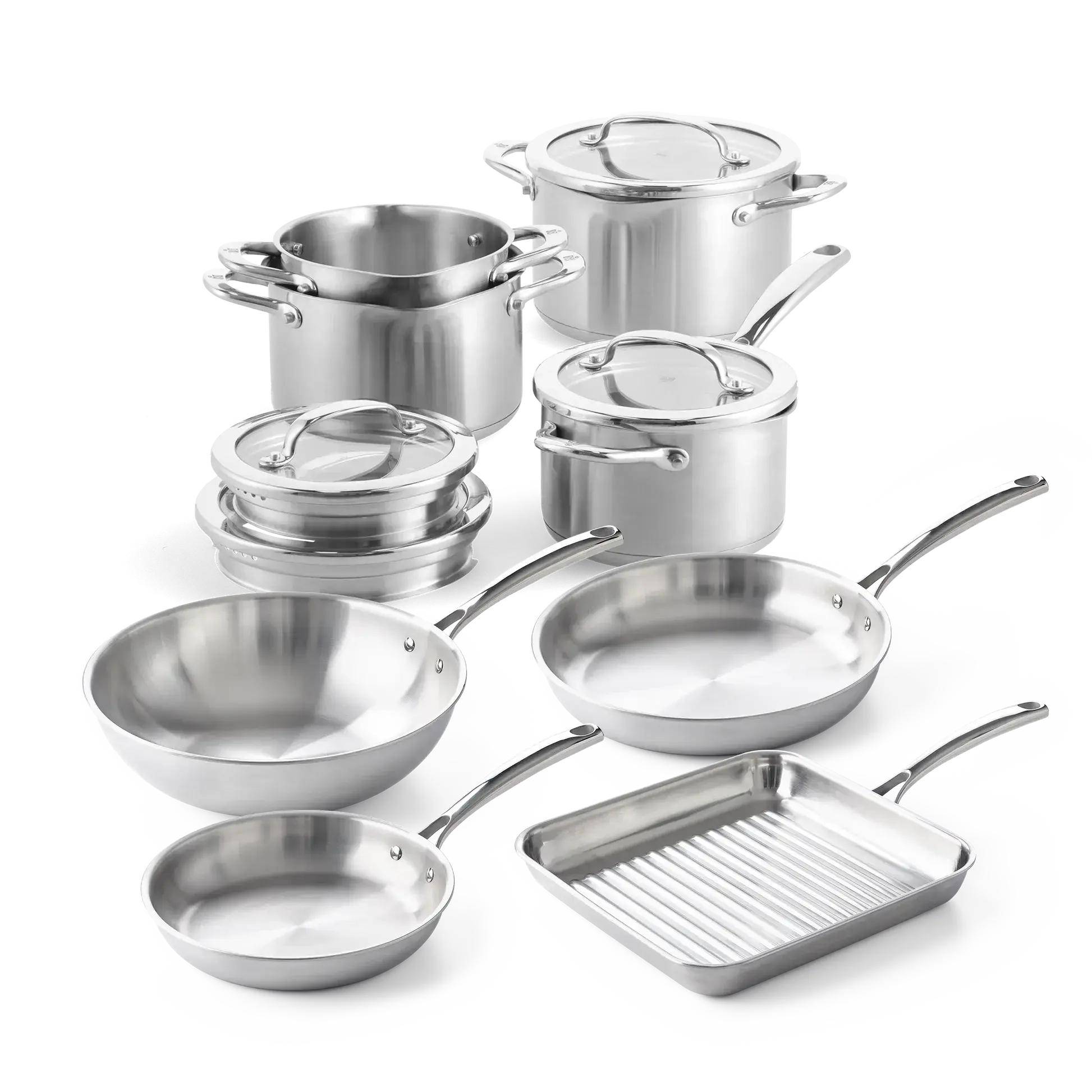 Maak koken een feestje met deze uitgebreide 8-delige Stainless Steel set! Gemaakt van hoogwaardig roestvrij staal en ontworpen voor zowel stijl als prestatie. De set combineert onze Twist kookpannenset met de Superior Tri-Ply pannen, waardoor je een complete keukenuitrusting krijgt voor bakken, grillen en wokken op hoge temperaturen.