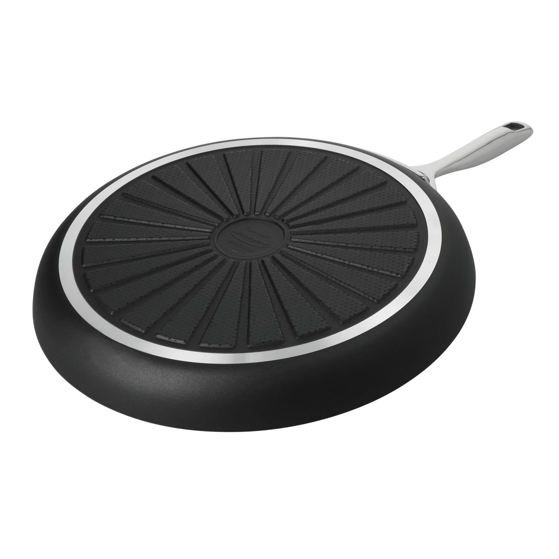 De lage, schuine rand zorgt ervoor dat pannenkoeken vlot uit de pan glijden en zich makkelijk laten keren. De extra dikke aluminium body garandeert een snelle en gelijkmatige warmteverdeling, terwijl de Radiant bodem zorgt voor optimale stabiliteit en contact met de kookplaat. Dankzij TriplInduc technologie is deze pan tot 30% efficiënter op inductie, een duurzame keuze die snel reageert op temperatuurveranderingen.