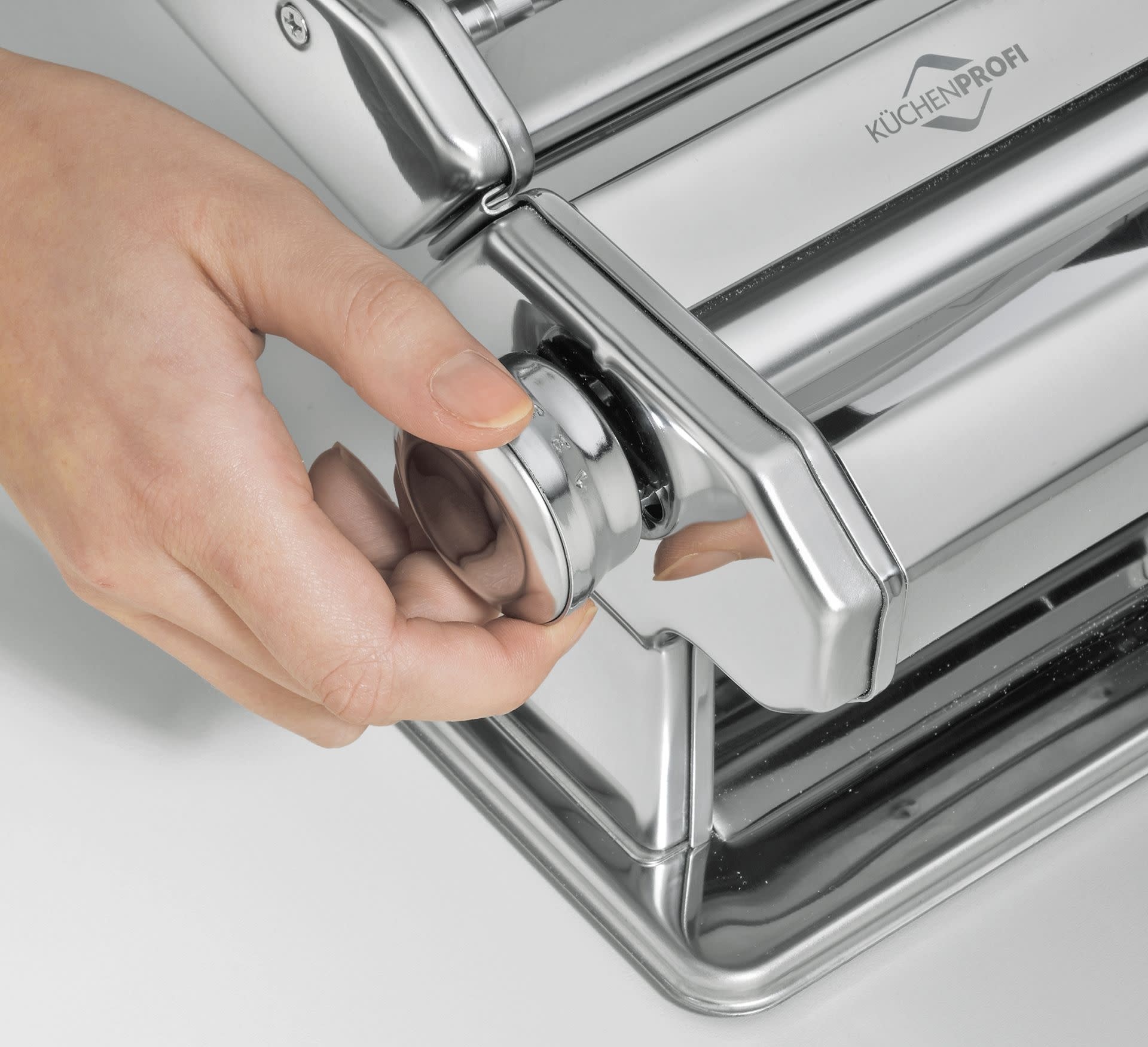 De Vitale 150 pastamachine van KÜCHENPROFI combineert professionele kwaliteit met een robuuste afwerking. Deze stijlvolle pastamachine in mat zwart is ontworpen voor zowel de enthousiaste hobbykok als de professionele chef.