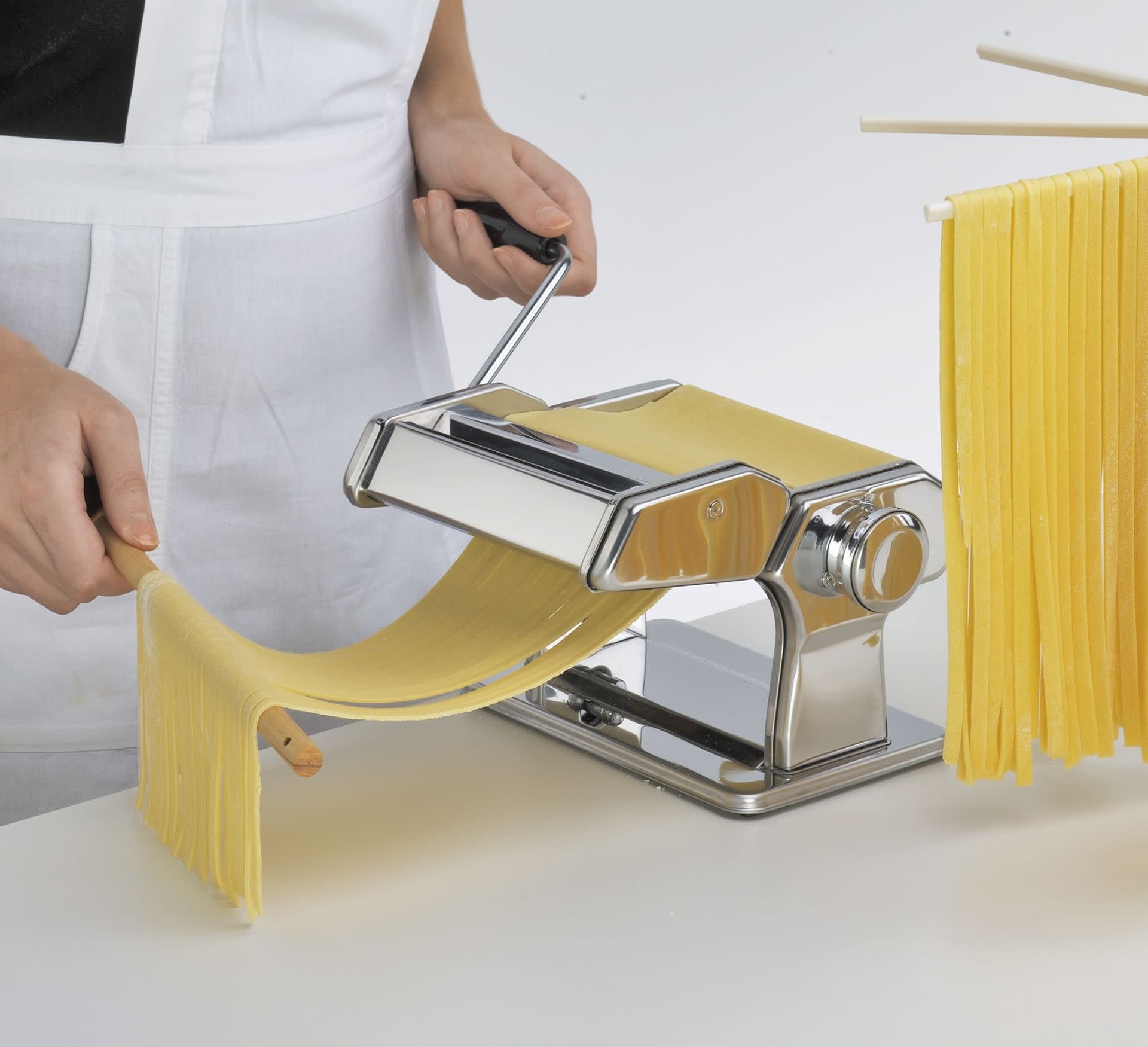 De geanodiseerde aluminium rollen zijn bijzonder corrosiebestendig en duurzaam, ideaal voor het maken van perfect gladde pastavellen zoals lasagne. Met de instelbare bediening voor zeven deegdiktes bepaal je precies hoe dun of dik het deeg wordt. Dankzij het afneembare opzetstuk maak je daarnaast eenvoudig tagliolini en tagliatelle.