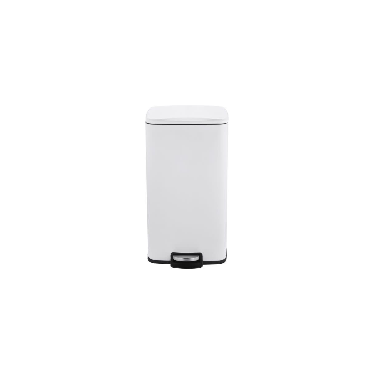 Het deksel sluit zacht en geruisloos, wat zorgt voor extra gebruiksgemak. De pedaalemmer is gemaakt van roestvrij staal en afgewerkt met een matte, vingerafdrukbestendige coating. De witte kleur in combinatie met zilverkleurige details geeft een frisse en tijdloze uitstraling.