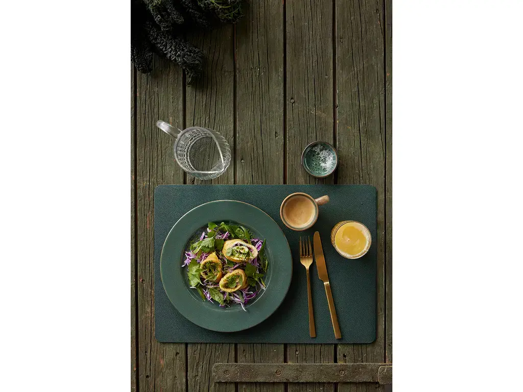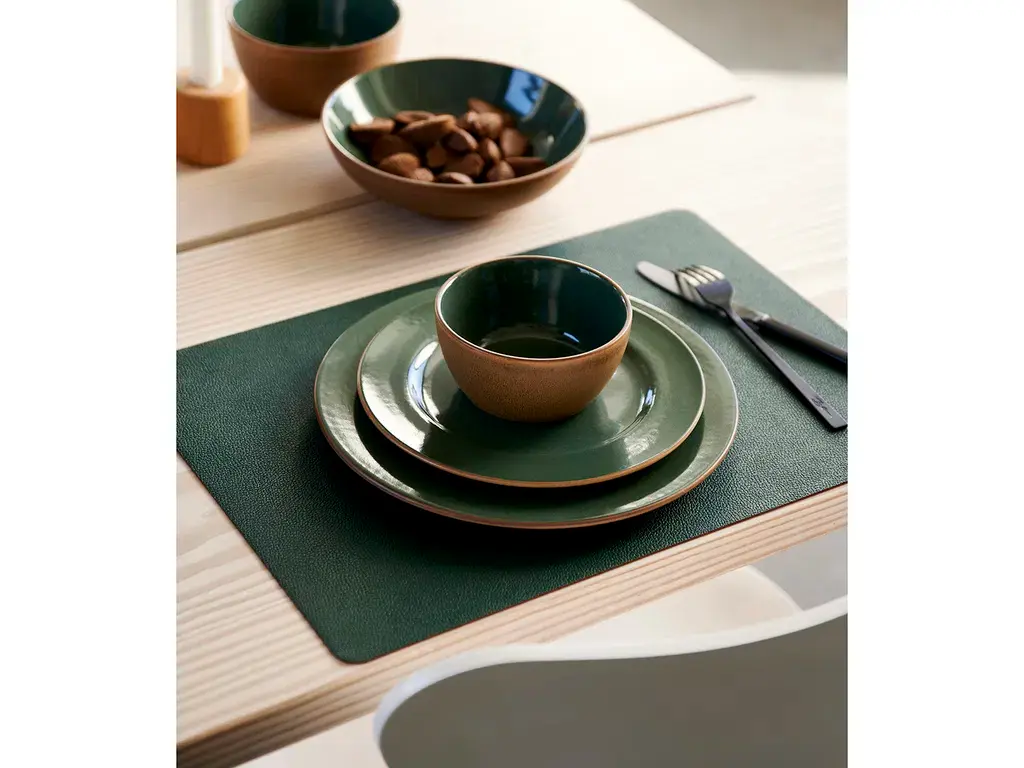 Deze reversibele placemats van BITZ combineren functionaliteit met een stoere, moderne uitstraling. Gemaakt van praktisch, wasbaar PVC met een leerlook, geven ze je tafel een ruige en eigentijdse stijl. De placemats zijn groen aan de ene kant en bruin aan de andere kant, waardoor je eenvoudig kunt afwisselen of je tafelstyling kunt aanpassen aan je gelegenheid.