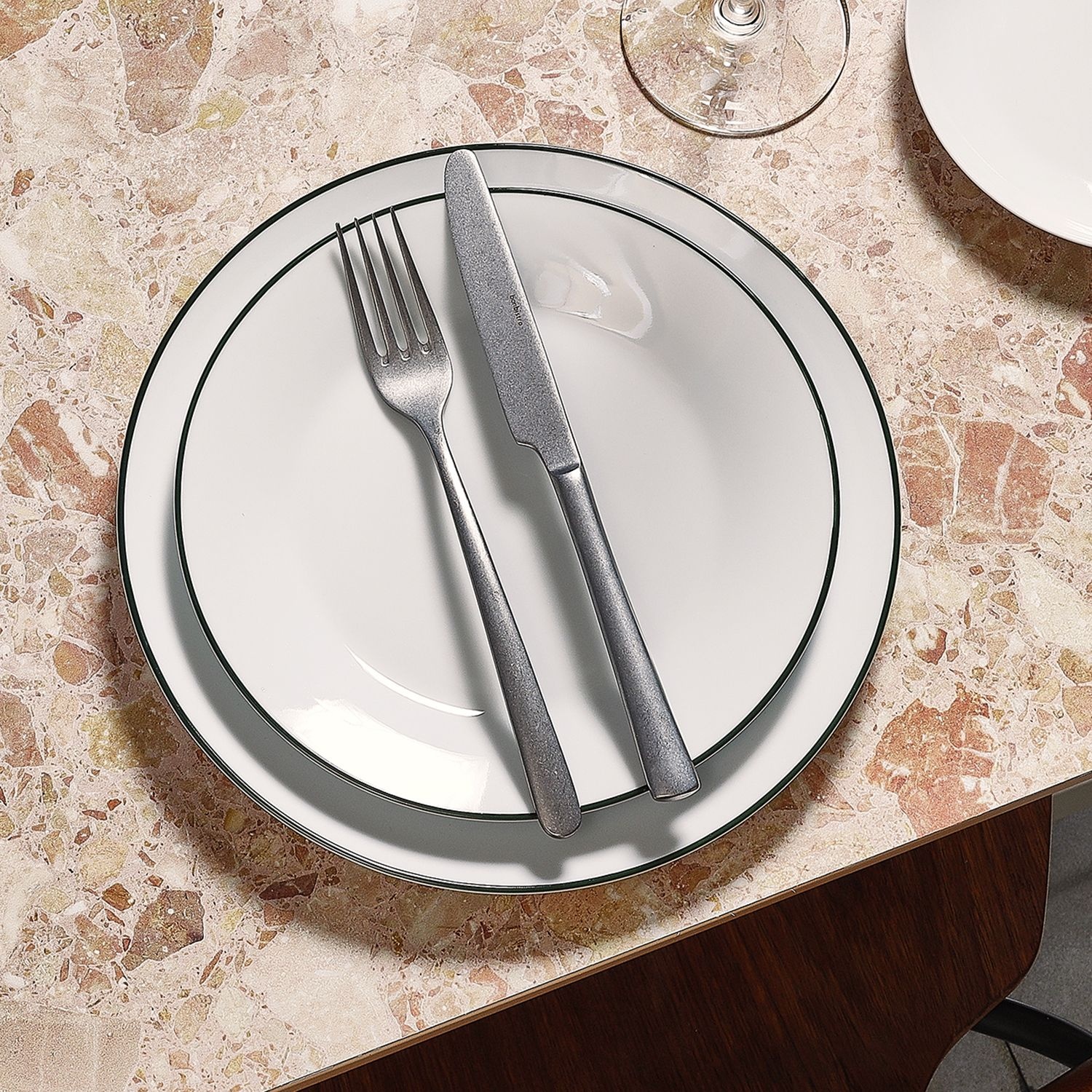 De Basic White collectie kenmerkt zich door een tijdloos ontwerp en is verkrijgbaar in meerdere varianten. Naast de volledig witte uitvoering zijn er randdecoraties in blauw, zwart, rood en groen beschikbaar. De verschillende uitvoeringen laten zich eenvoudig met elkaar combineren en zorgen voor een uniforme en professionele uitstraling op tafel. Bovendien is het bord is vaatwasmachine- en magnetronbestendig.