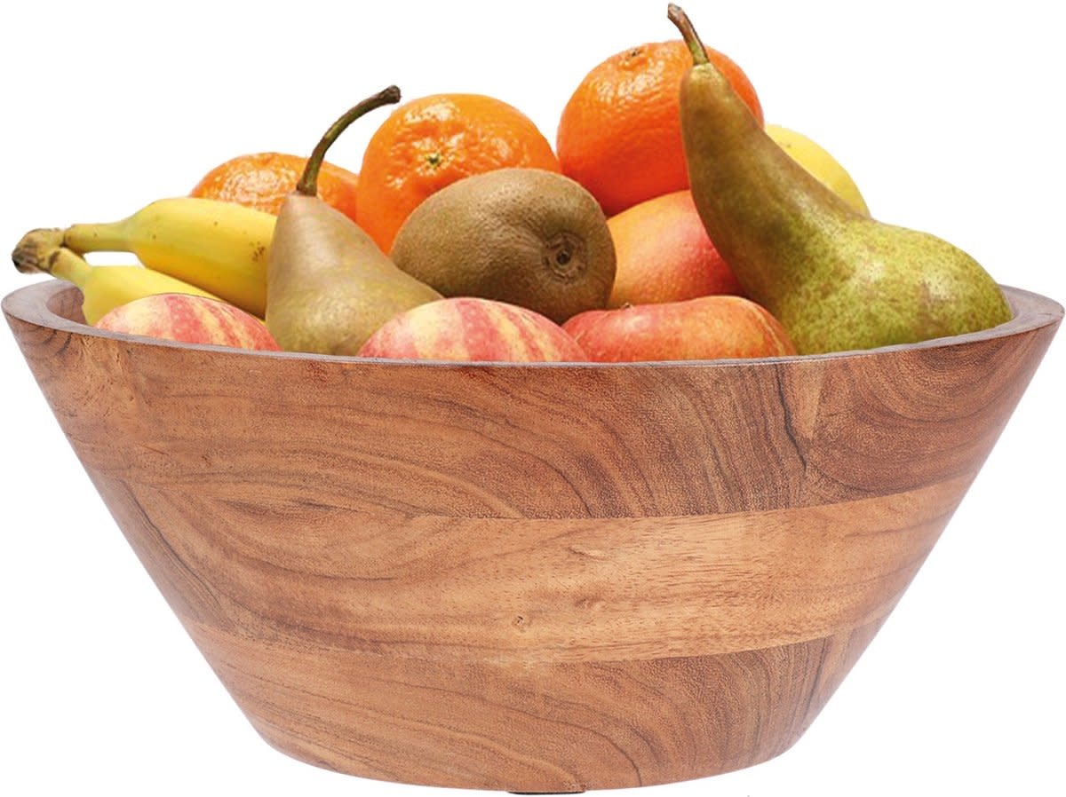 Breng natuurlijke warmte en stijl in je interieur met de H&S Collection fruitschaal van acacia hout. Deze ronde schaal is ideaal voor het bewaren van fruit, maar kan ook gebruikt worden als serveerschaal of decoratief element op tafel of in de keuken.
