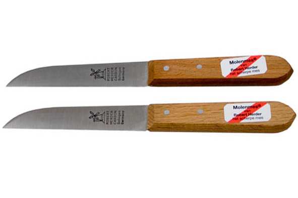 Het Herder Molenmes is een klassiek mes met een rijke geschiedenis en een unieke eigenschap: het is niet gemaakt van roestvrij staal. In plaats daarvan wordt dit mes vervaardigd van hoogwaardig koolstofstaal, wat het zijn karakteristieke uitstraling en snijkwaliteit geeft.