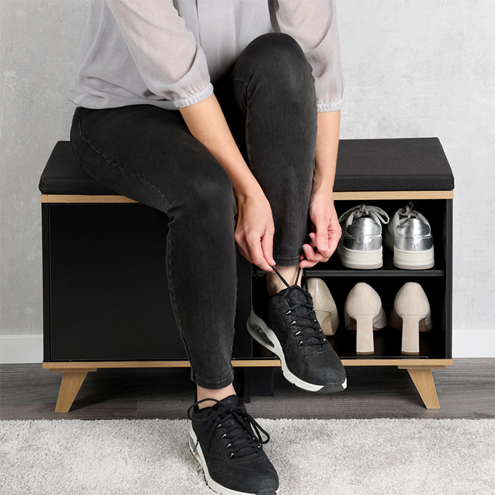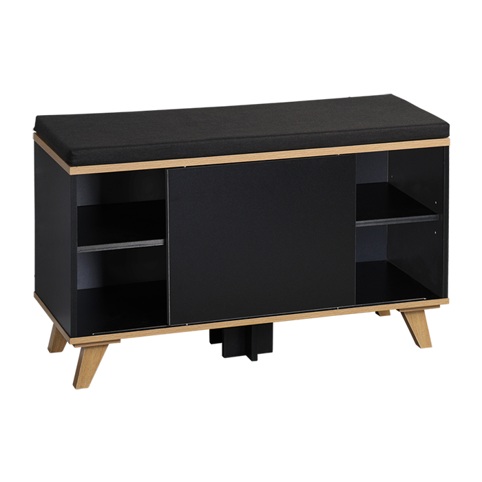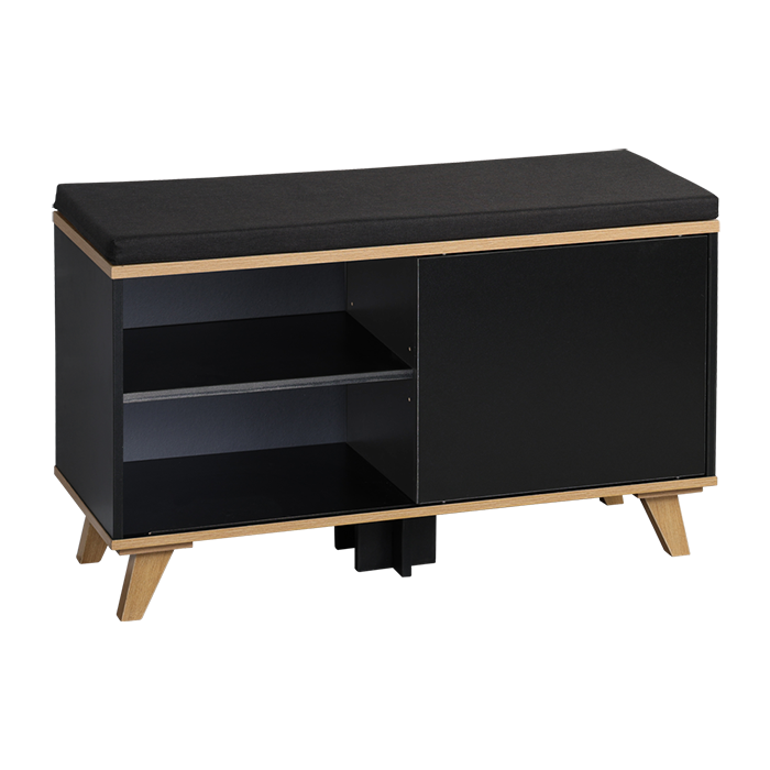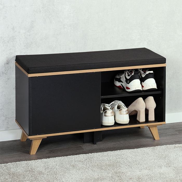 Schoenenkast met zitkussen 77x30x48cm zwart Kesper