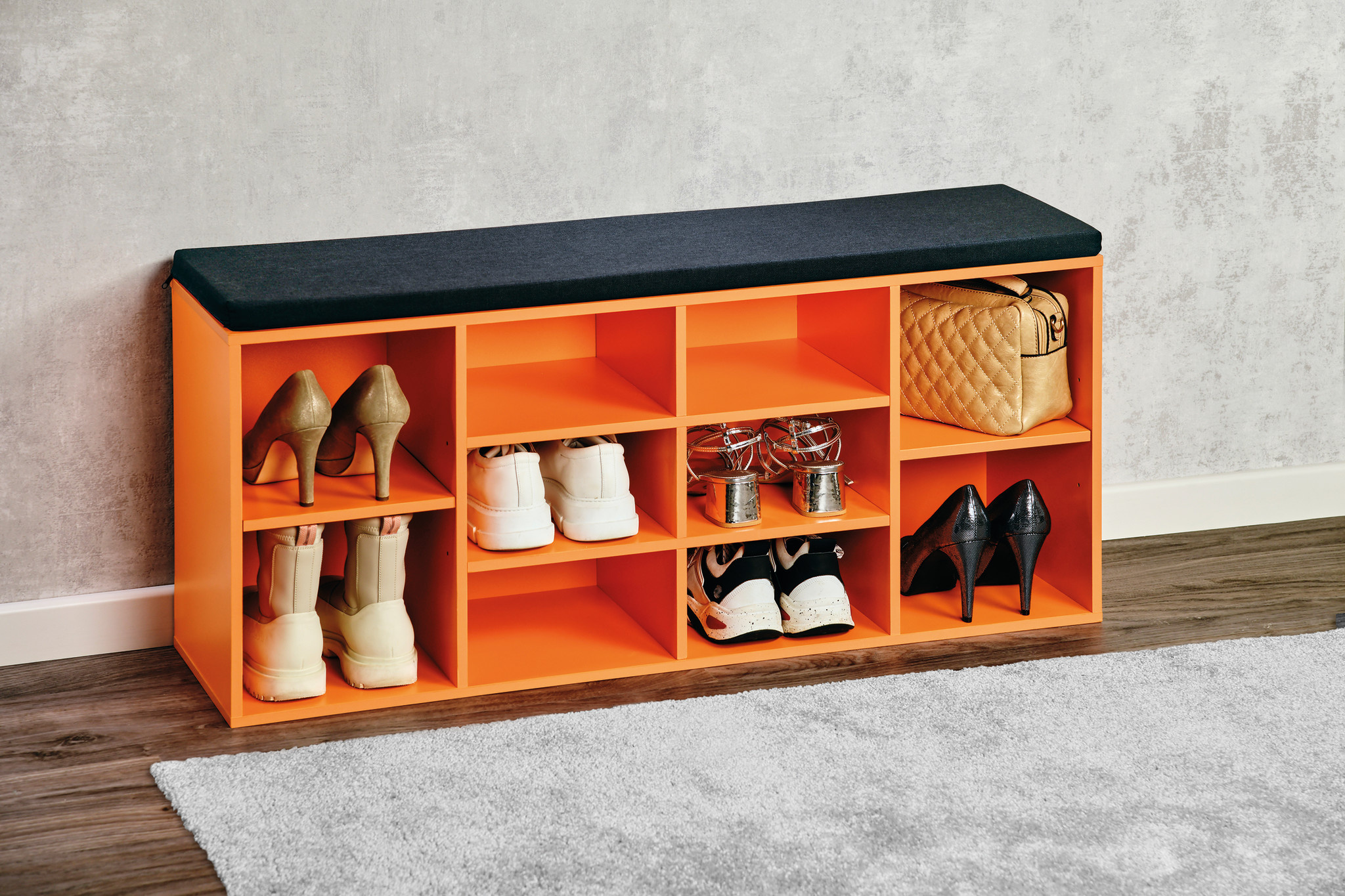 Schoenenkast met zitkussen oranje
