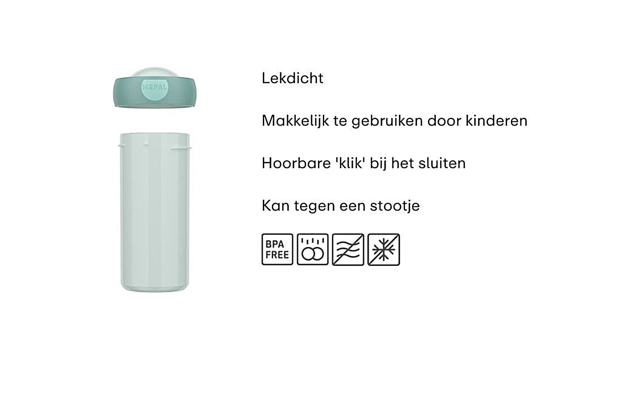 De ideale schoolbeker? Een lekvrije natuurlijk! Kies daarom voor deze schoolbeker van Mepal met Stitch van Lilo en Stitch erop. De speciale afdichtring in de schroefdeksel zorgt voor een hermetische sluiting. De drinkbeker is makkelijk door kinderhandjes te openen en te sluiten en kan tegen een stootje. Neem de beker mee tijdens een dagje uit, naar de speeltuin, naar zwemles of natuurlijk gewoon mee naar school. Waar je ook naar toe gaat, de schoolbeker van Mepal gaat met je mee! De beker heeft een inhoud van 300 ml en mag na gebruik gewoon in de vaatwasser.