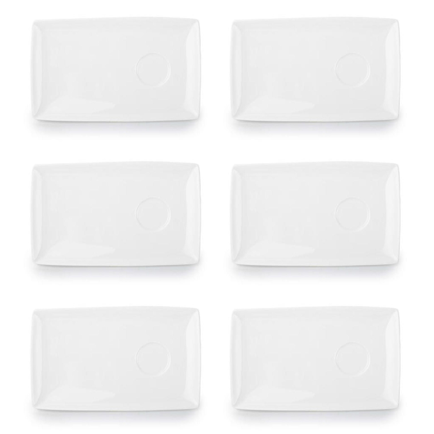 Serveer espresso of kleine koffiespecialiteiten in stijl met deze set van 6 witte mokkaschotels uit de Squito-serie. Elk rechthoekig schoteltje van 17x10 cm is vervaardigd uit stevig en hoogwaardig New Bone China porselein, wat zorgt voor duurzaamheid, elegantie en een verfijnde uitstraling. Het klassieke, minimalistische design past perfect in cafés, bistro’s of bij een verzorgde koffietafel thuis en voegt een tijdloze touch toe aan iedere presentatie.