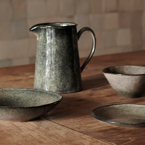 Deze set is organisch gevormd en met de hand geglazuurd, waardoor elk item uniek is. Gemaakt van hoogwaardig steengoed, combineert het traditionele vakmanschap met moderne tafeldressing. De set is zowel vaatwasser- als magnetronbestendig, voor optimaal gebruiksgemak.