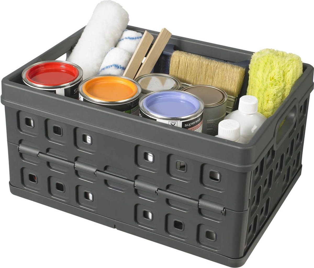 Dankzij de stevige handgrepen til je het krat makkelijk op, en wanneer je hem niet nodig hebt, klap je hem eenvoudig in. Zo neemt hij weinig ruimte in en is hij ideaal om mee te nemen in de auto, caravan of camper. Perfect voor boodschappen, een dagje weg of als extra opbergruimte thuis.