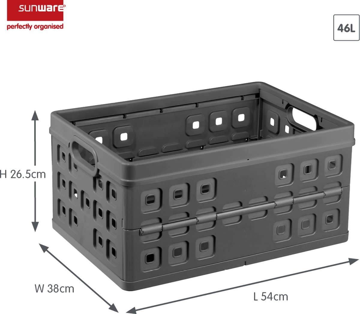De Sunware Square vouwkrat van 46 liter is een handige hulp voor boodschappen, kampeerspullen, sportmateriaal en nog veel meer. Dit inklapbare krat wordt standaard geleverd met een uitneembare koeltas, zodat je hem ook kunt gebruiken voor het koel houden van eten en drinken. Haal je de koeltas eruit, dan blijft er een ruim vouwkrat over die je voor allerlei opberg- en transportdoeleinden kunt gebruiken.