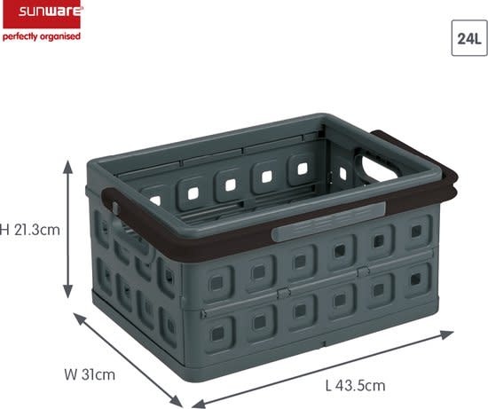 De Sunware Square vouwkrat van 24 liter is een handige hulp voor boodschappen, kampeerspullen, sportmateriaal en nog veel meer. Dit inklapbare krat wordt standaard geleverd met een uitneembare koeltas, zodat je hem ook kunt gebruiken voor het koel houden van eten en drinken. Haal je de koeltas eruit, dan blijft er een ruim vouwkrat over die je voor allerlei opberg- en transportdoeleinden kunt gebruiken.