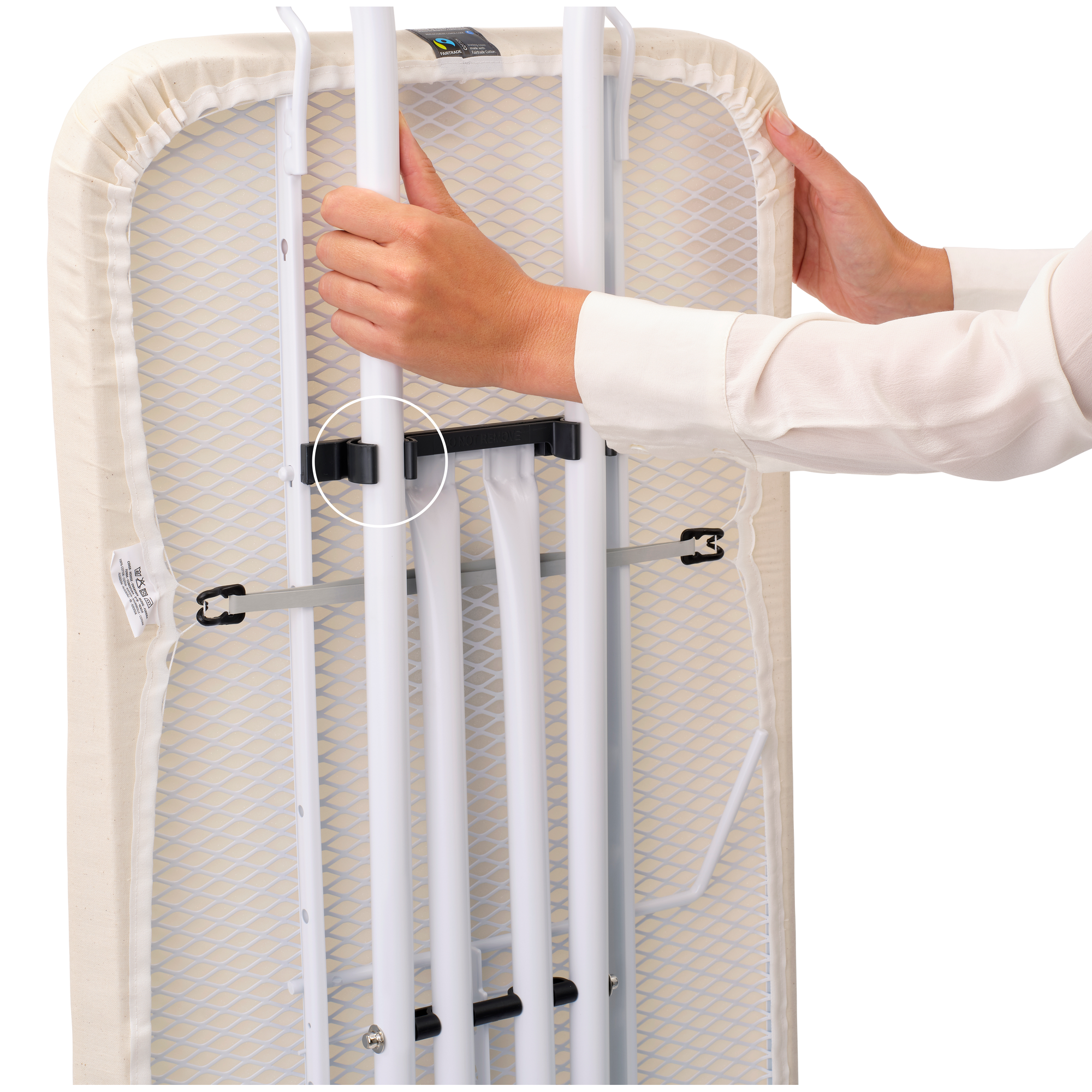 De hoes is gemaakt van 100% Fairtrade gecertificeerd katoen, voorzien van een veerkrachtige schuimlaag en uitgevoerd in een natuurlijke, ongebleekte ecru-look. En dankzij het Stretch-Systeem zit de hoes altijd strak, voor optimaal strijkgemak.