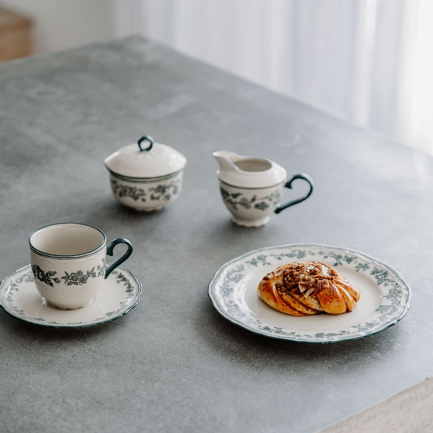 De Cyril collectie kenmerkt zich door bloemmotieven in modern groen en diep bordeaux, waarin een evenwicht wordt gevonden tussen een nostalgische uitstraling en een eigentijdse vormgeving. De verschillende items binnen de collectie, waaronder borden, kommen, mokken en diverse tafelaccessoires, zijn ontworpen om een sfeervolle en verzorgde tafelsetting te creëren.