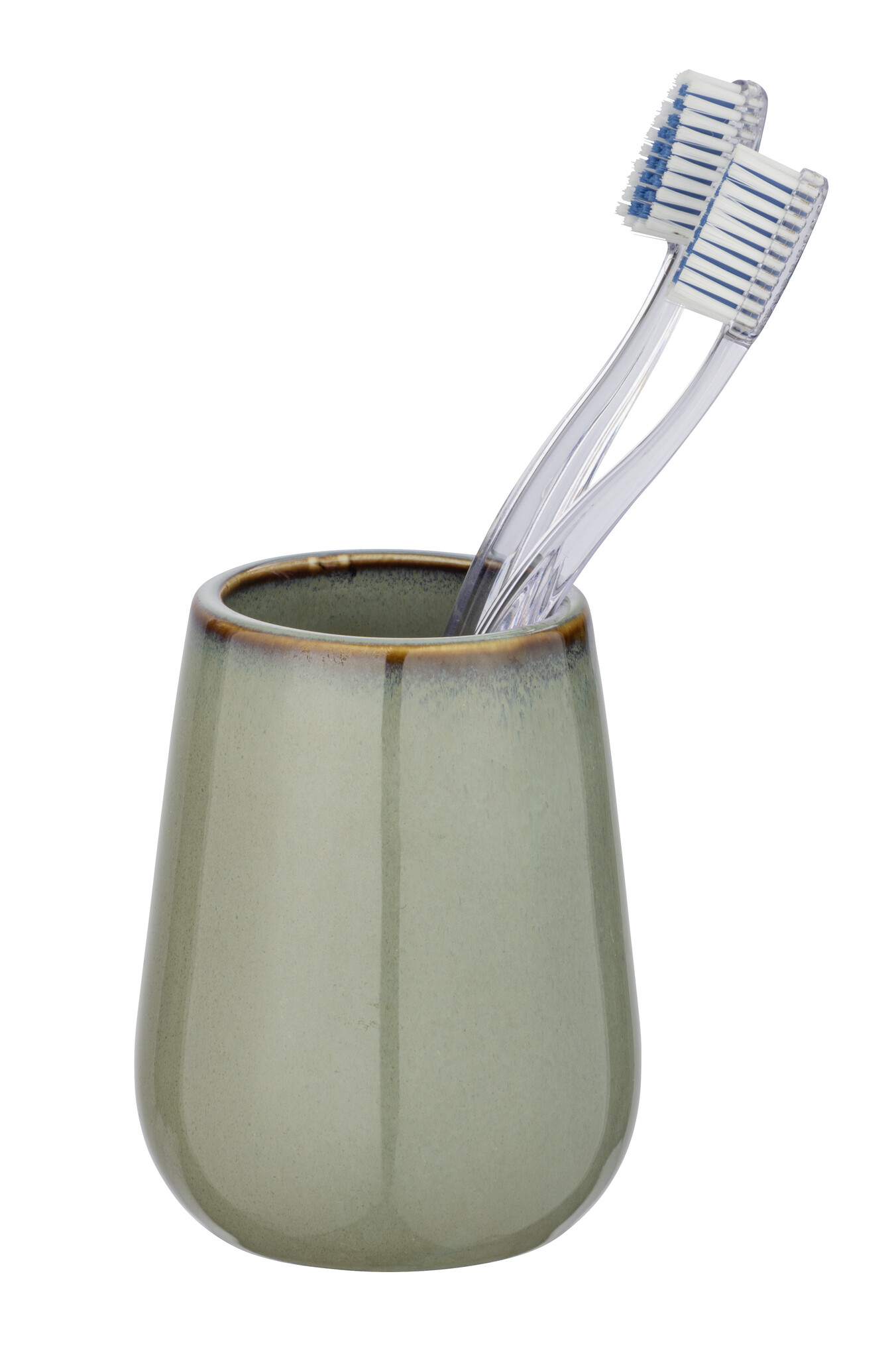 Voeg een vleugje elegantie toe aan uw badkamer met de Sirmione tandenborstelbeker van Wenko. Deze stijlvolle beker combineert een zachte groene kleur met een verfijnde koperen rand en brengt zo rust en balans in uw interieur.